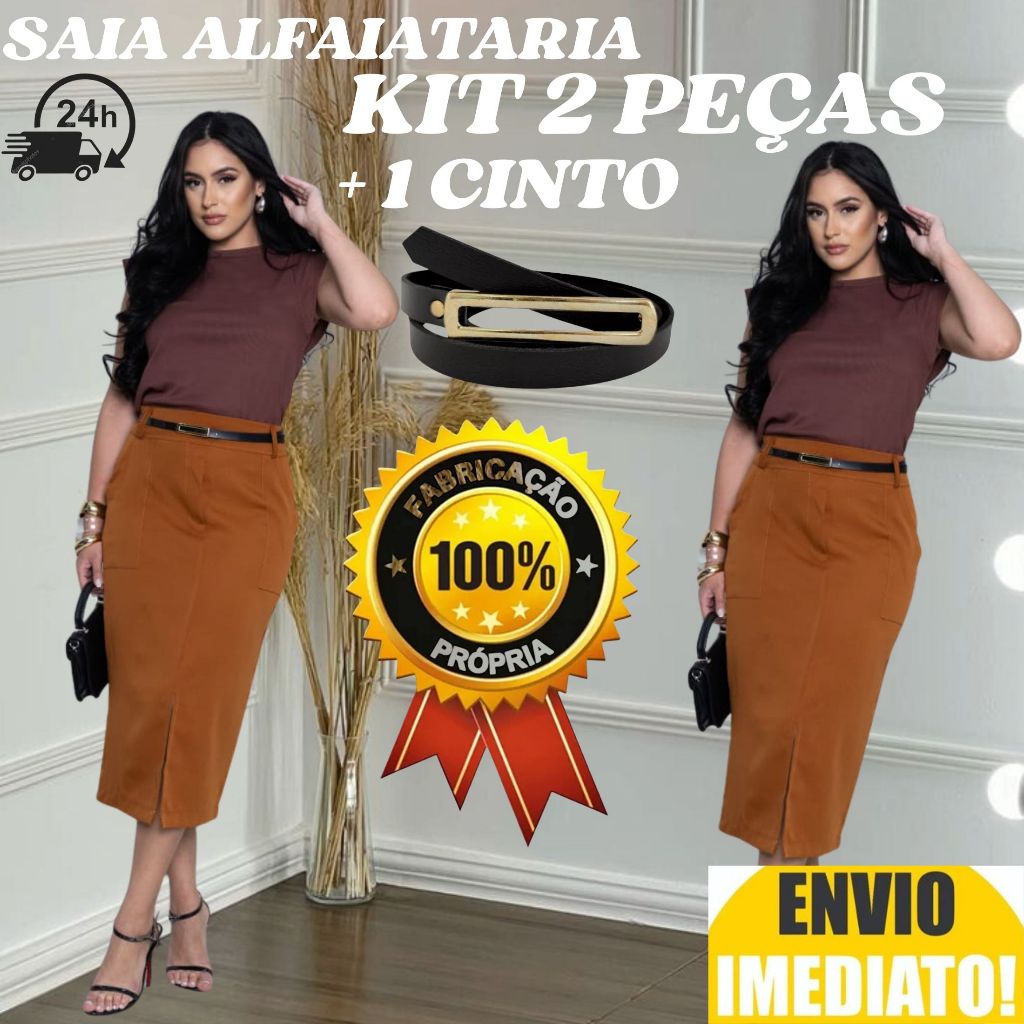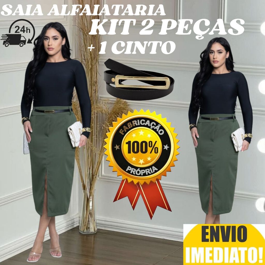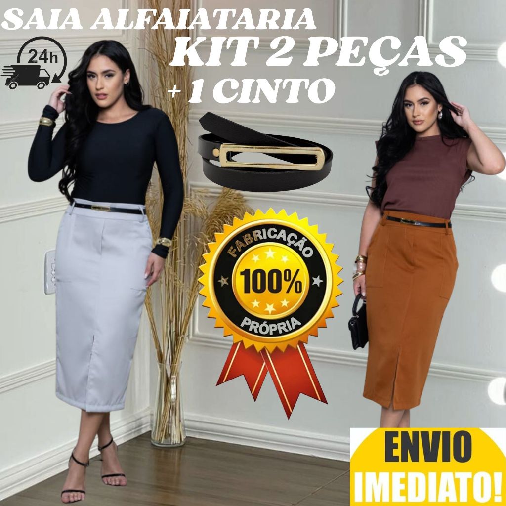 kit 2 Saia Longa Feminina Alfaiataria ACOMPANHA CINTO