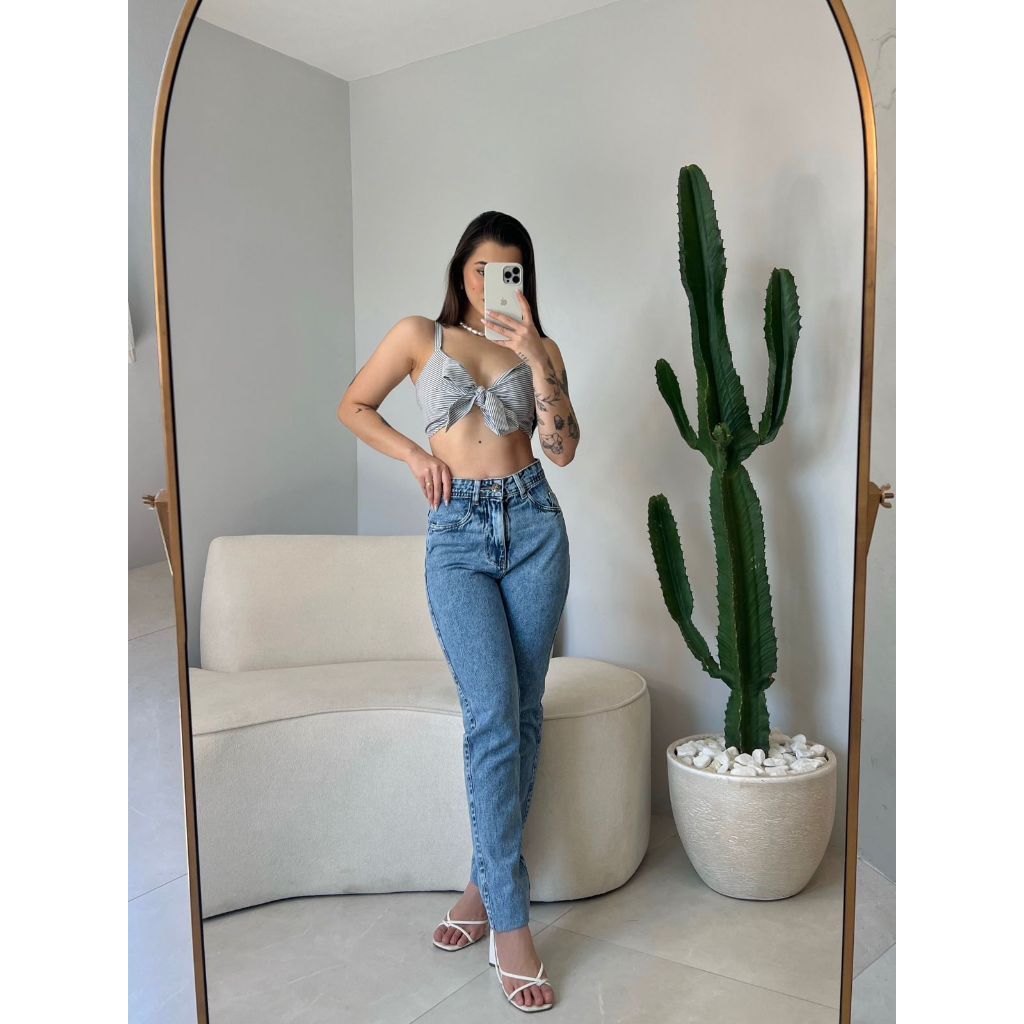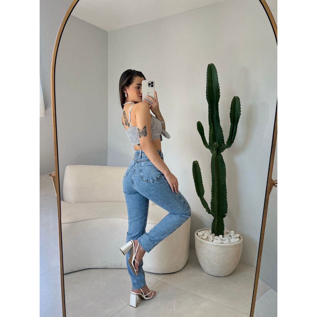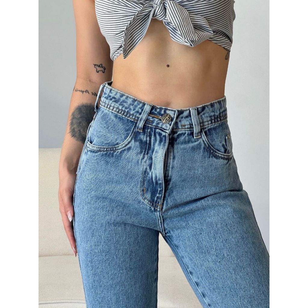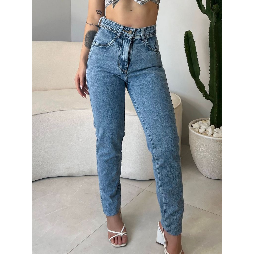 MOM JEANS PREMIUM LAVAGEM VINTAGE JEANS 100% MARMORIZADA ESTONADA