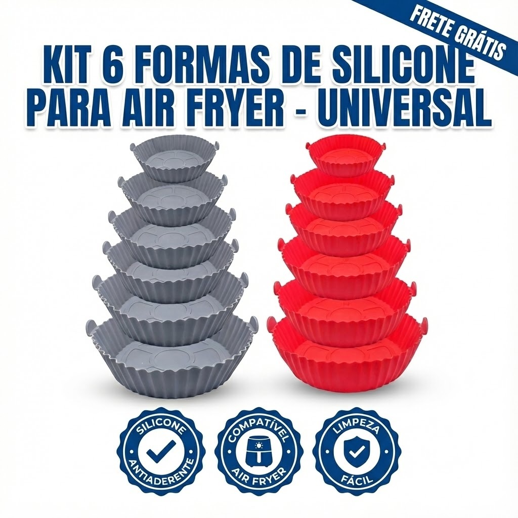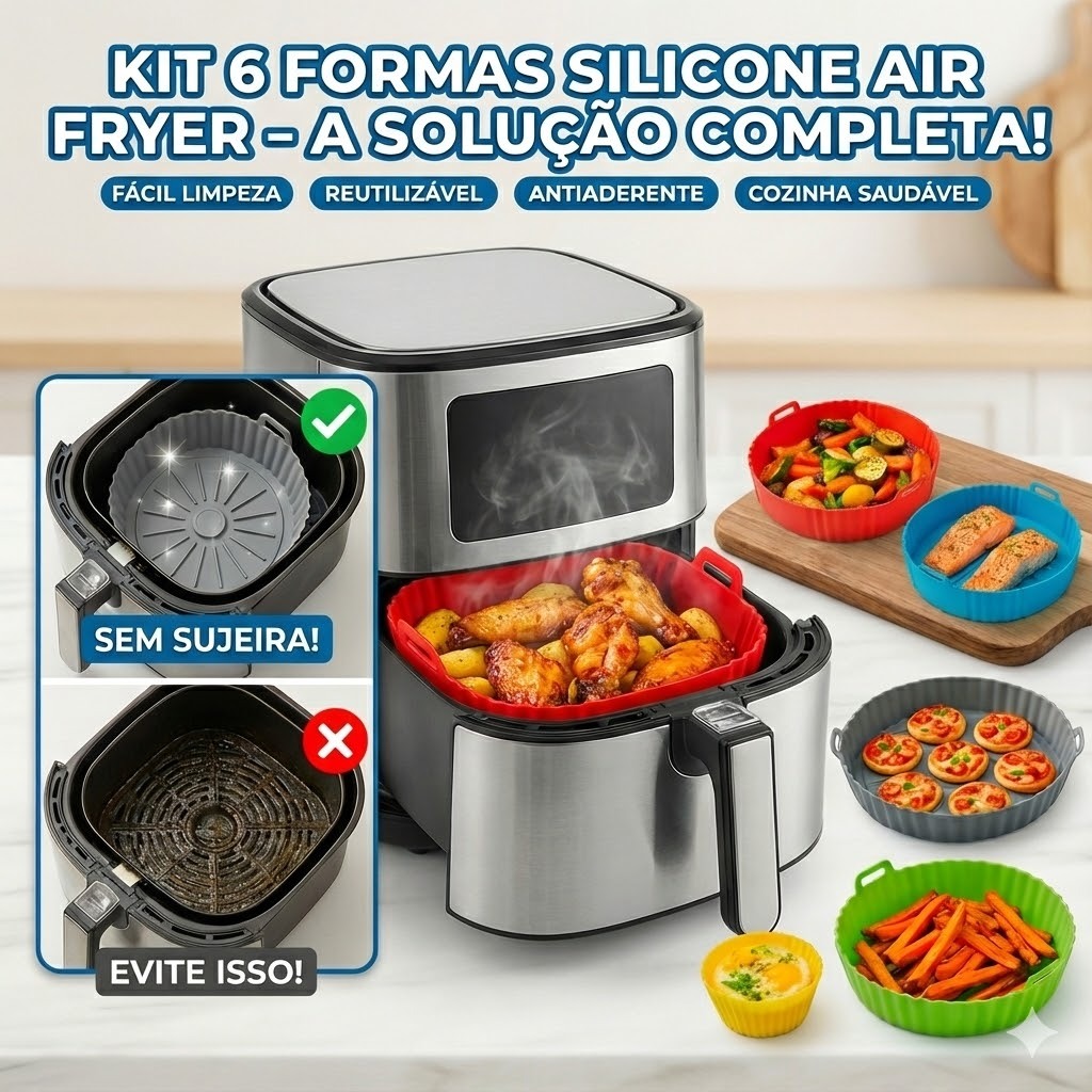 Kit 6 Formas Silicone Air Fryer Universal: NUNCA MAIS SUJE O CESTO! Antiaderente e Lavável