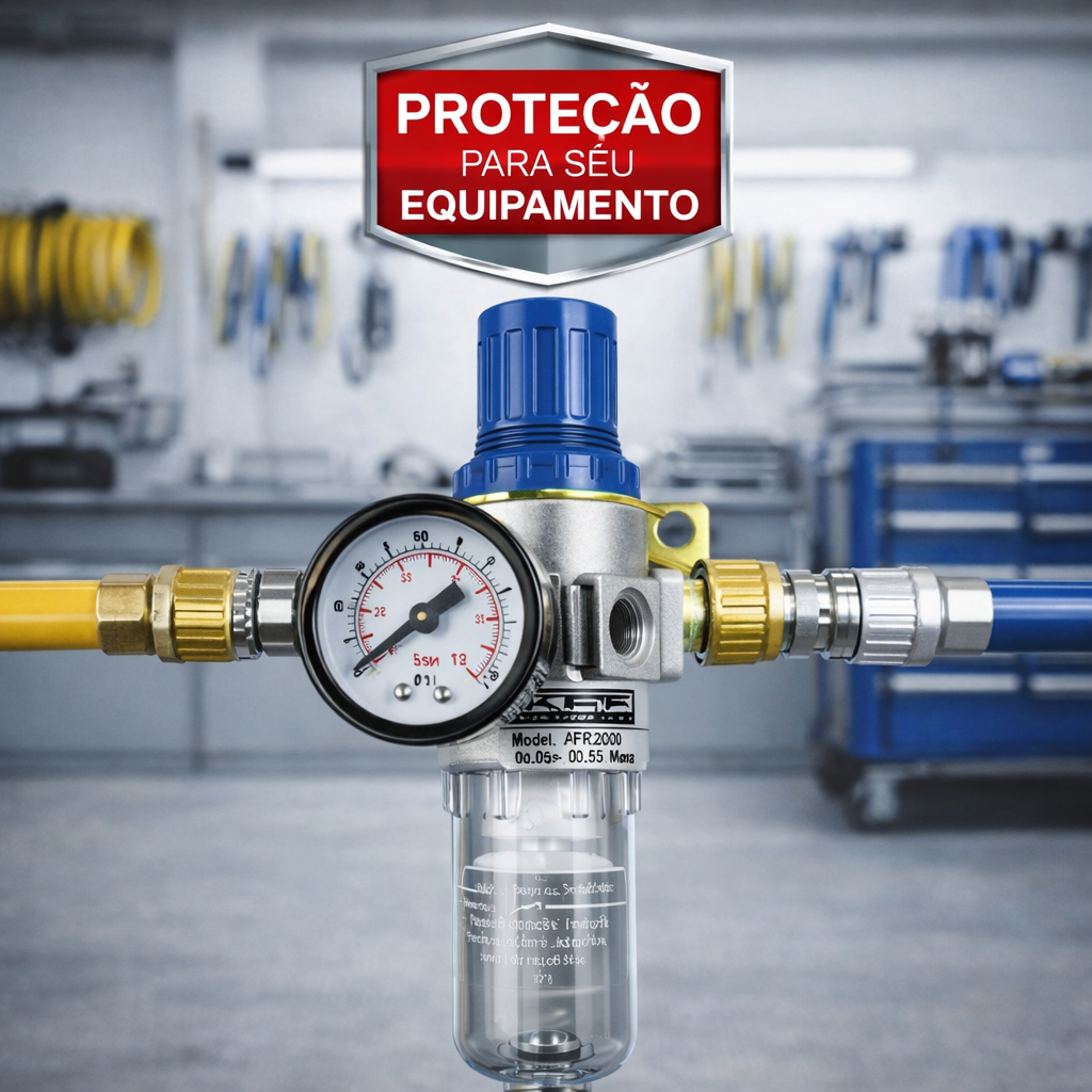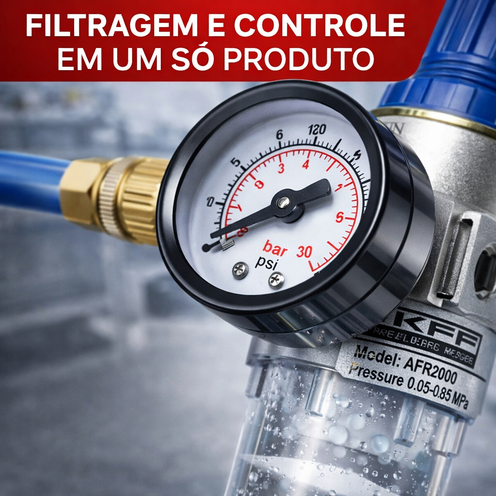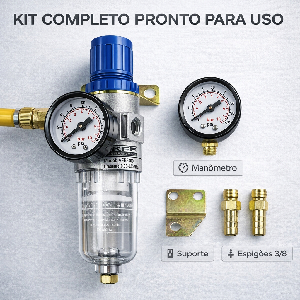 Filtro Regulador Ar Compressor 1/4 Completo com Manômetro e Espigão 3/8