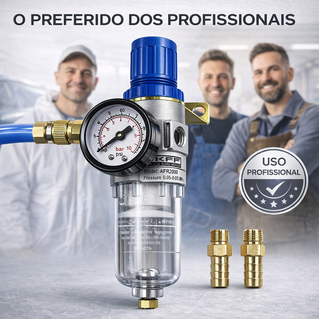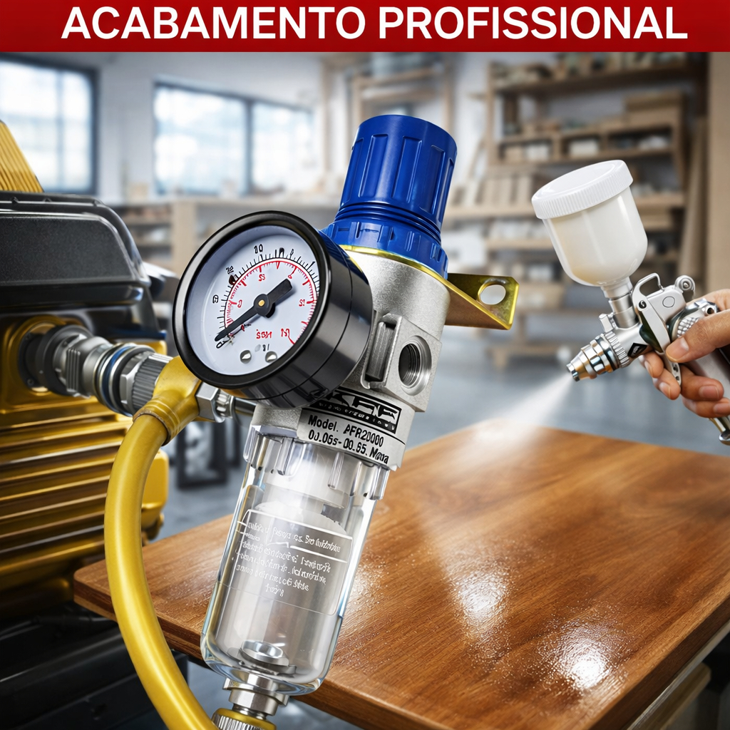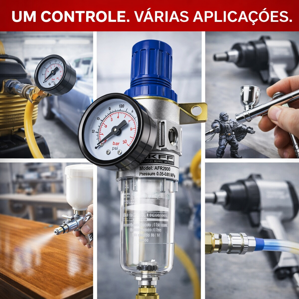 Filtro Regulador Ar Compressor 1/4 Completo com Manômetro e Espigão 3/8