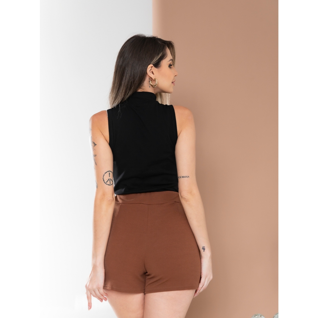 SHORT FEMININA CINTURA ALTA BOLSO NA FRENTE FIVELA ENCAPADO