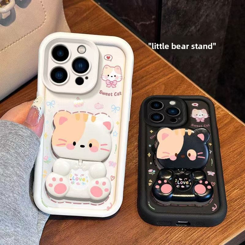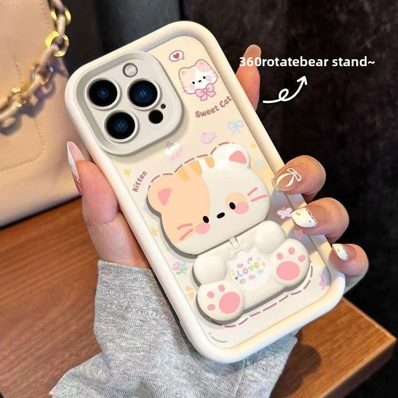 case POCO m7 pro 5g X7 Pro 5G X7 M6 Plus 5G M6 4G Soft shell silicone rotating mirror cute bear strap holder