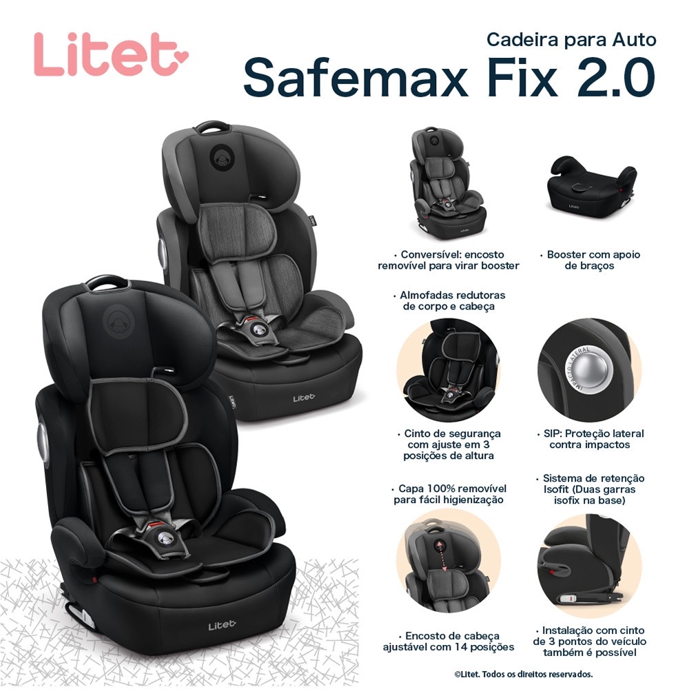 Cadeirinha Infantil para carro Safemax Fix 2.0 Isofix 9-36 Kg Preta Litet - BB459