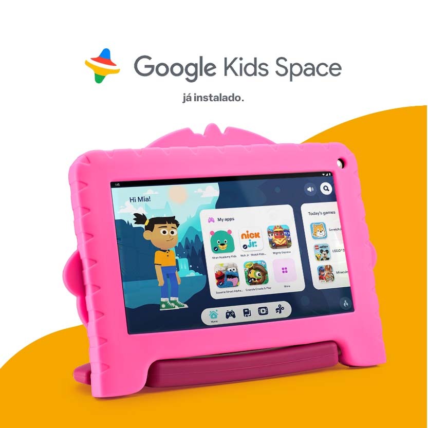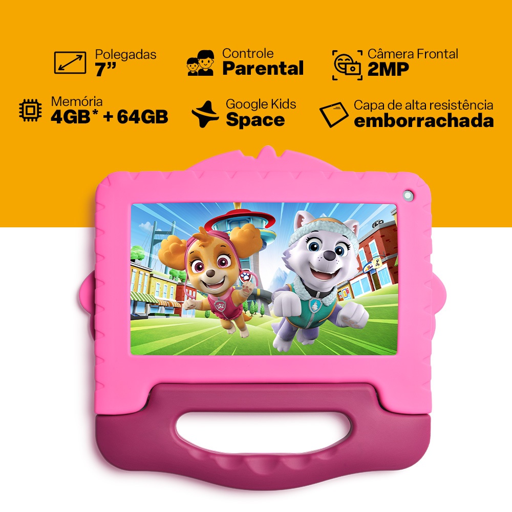 Tablet Multi Patrulha Canina Skye com Controle Parental 7 pol 4GB RAM 64GB Android 13 Quad Core + Case + Wi-fi - NB422