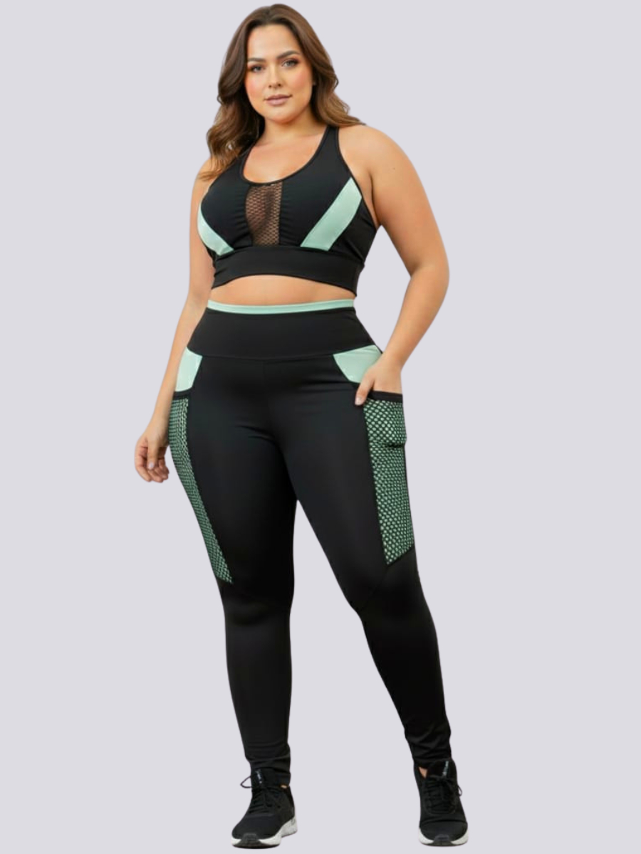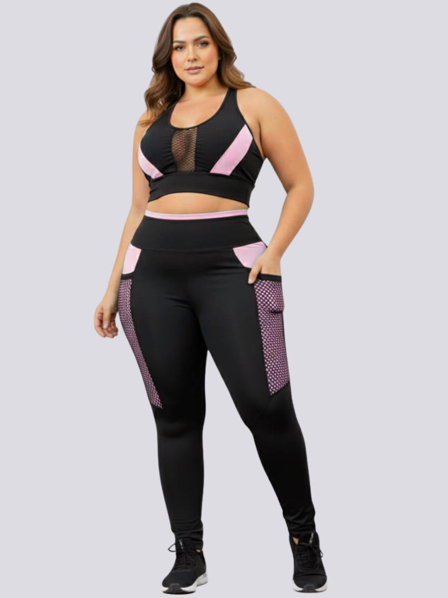 Conjunto Academia Top E Calça Plus Size Com Bolso Treino