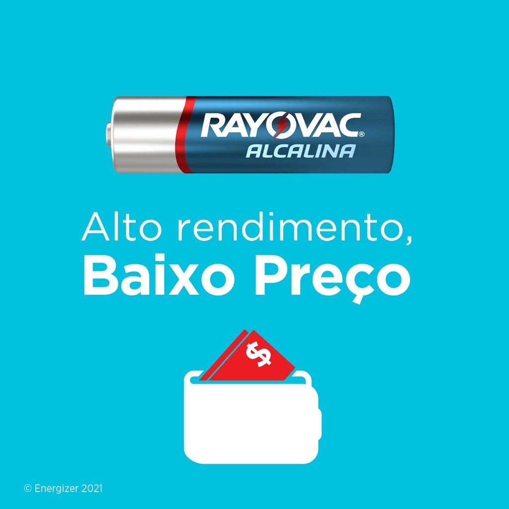 Pilha Alcalina AA Rayovac Bateria 2A Pequena kit 60 unidades