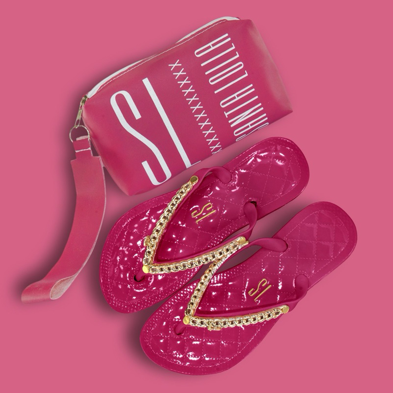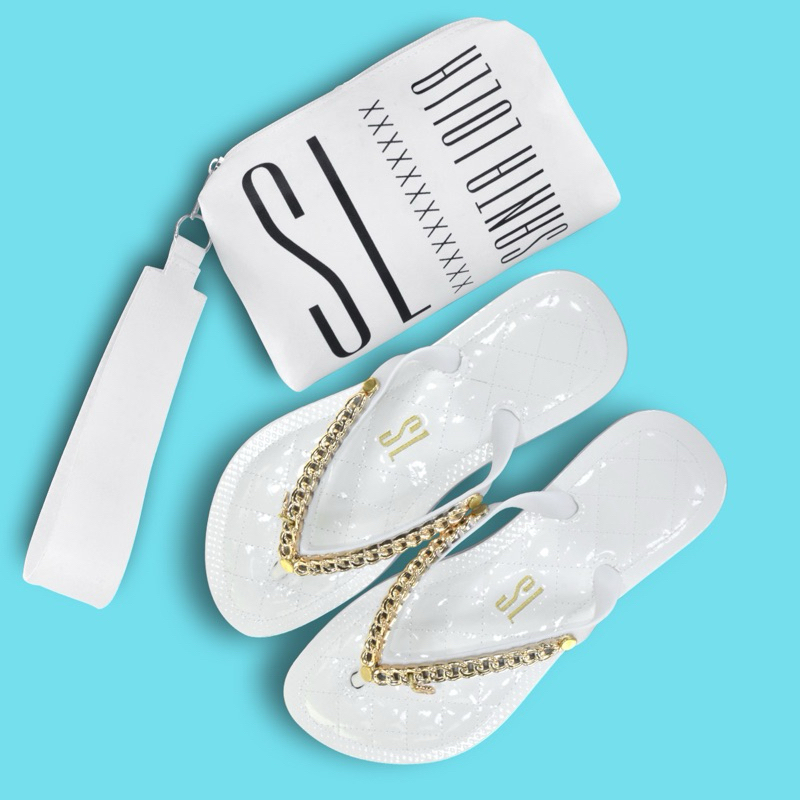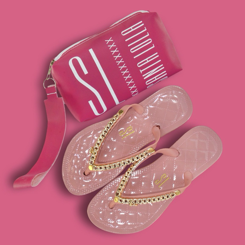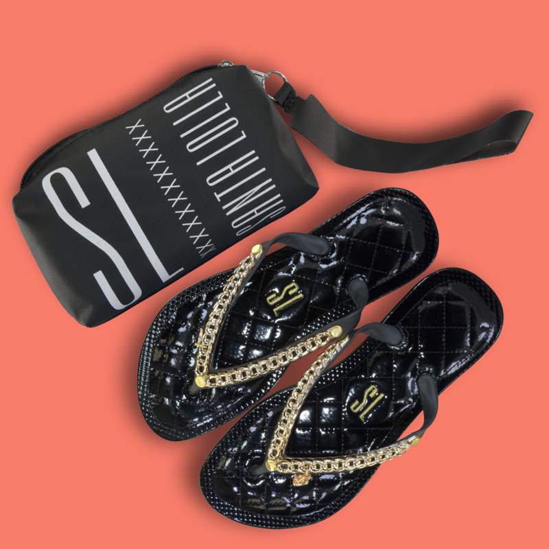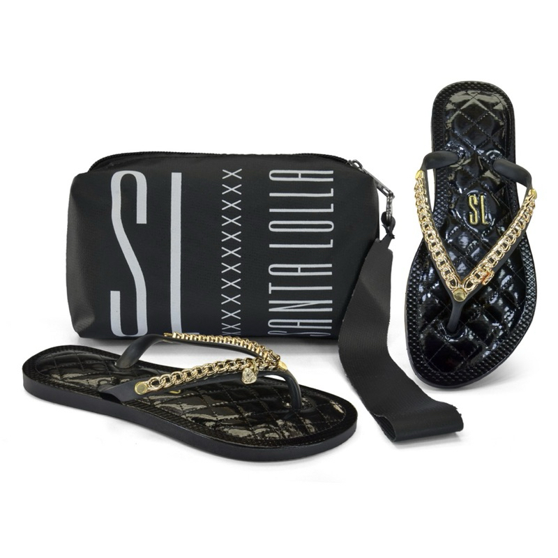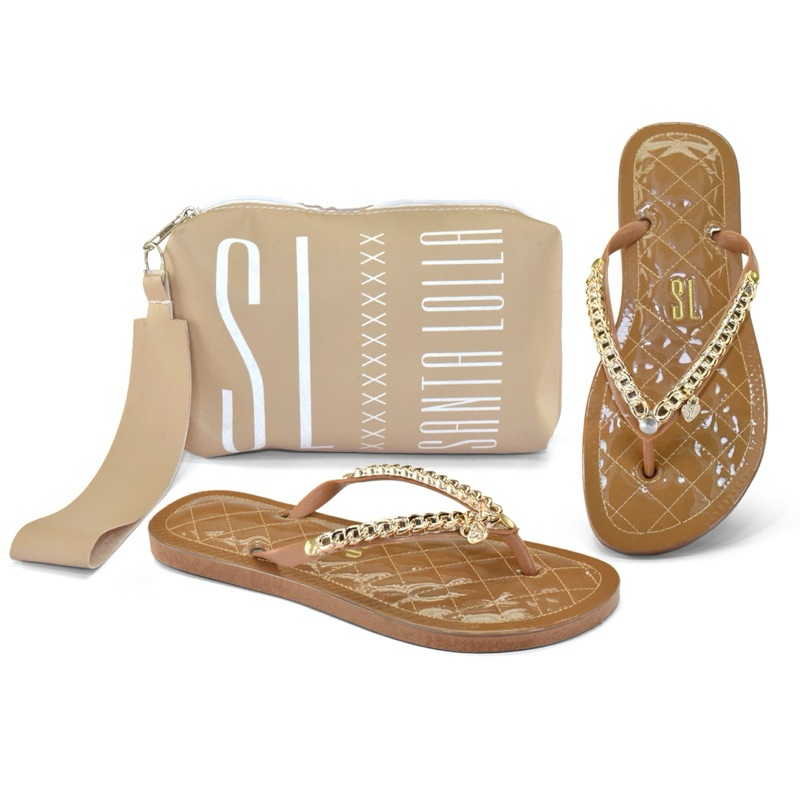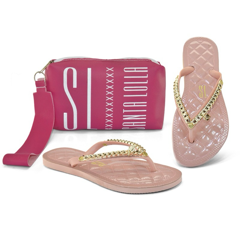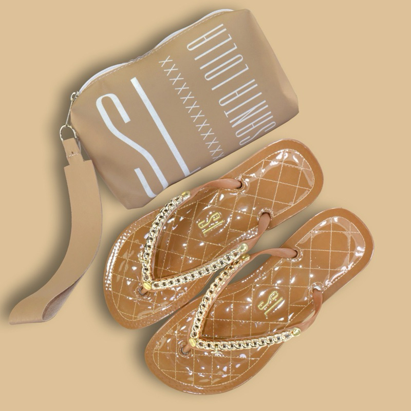Chinelo Feminino Slim Santa Lolla Bordada + Bolsa de Mao Carteira Feminina Necessaire
