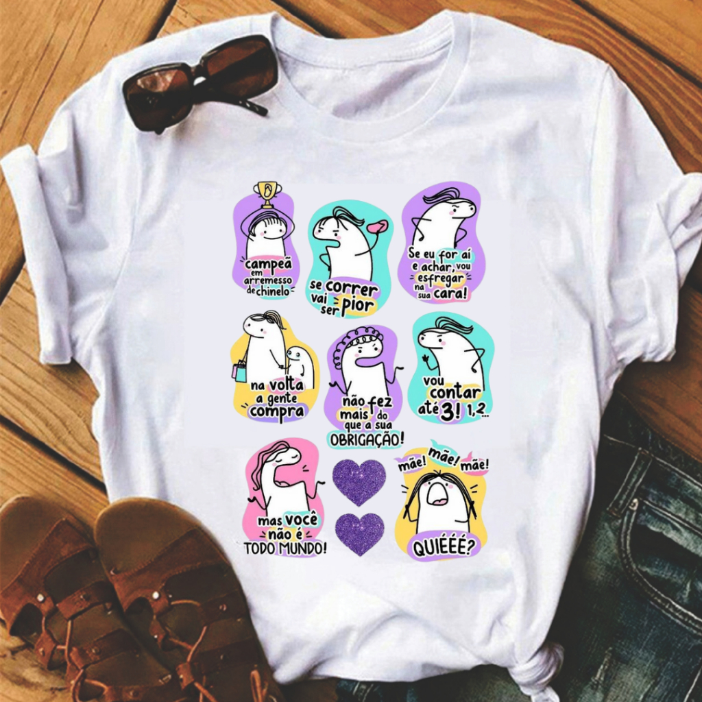 T-shirt Feminina Manga Curta Blusinhas Estampas Atuais