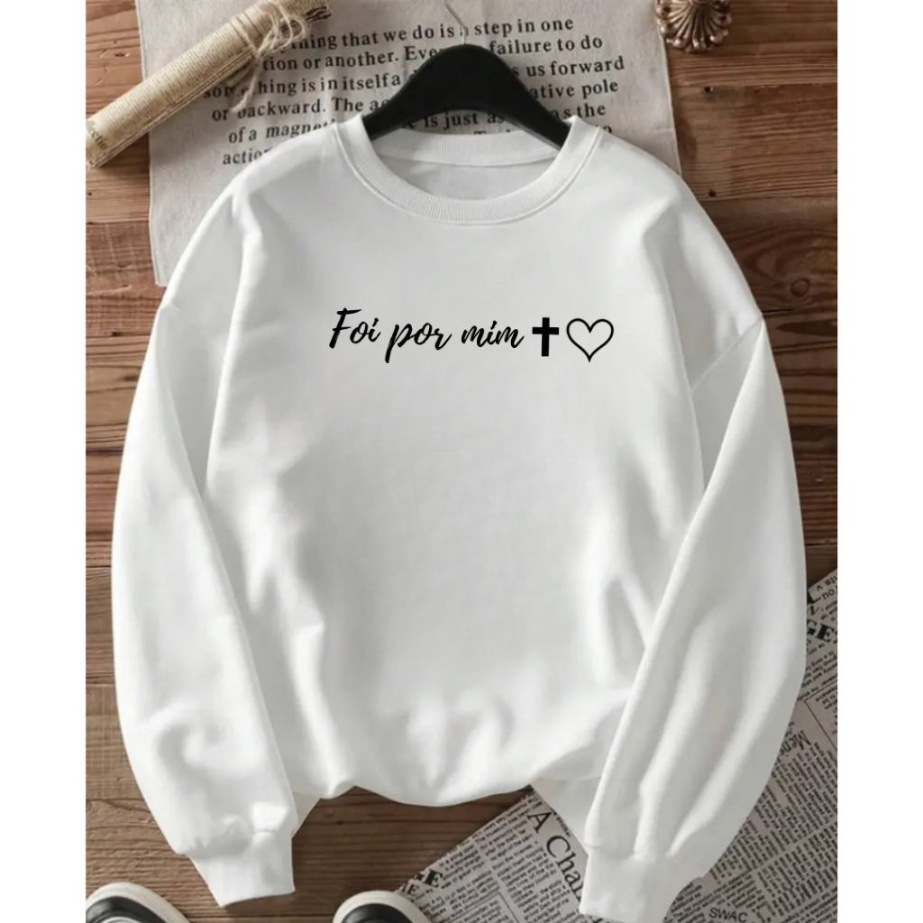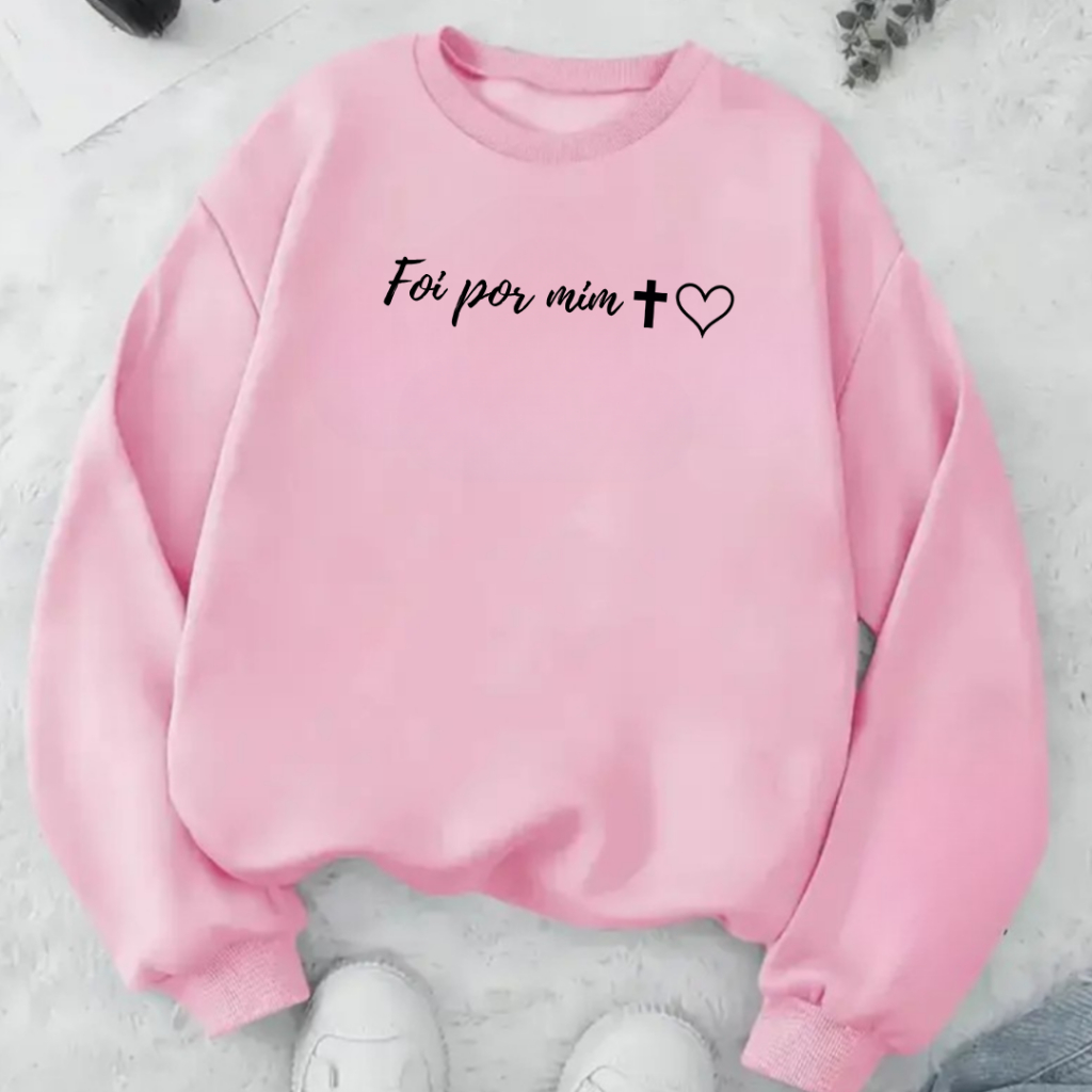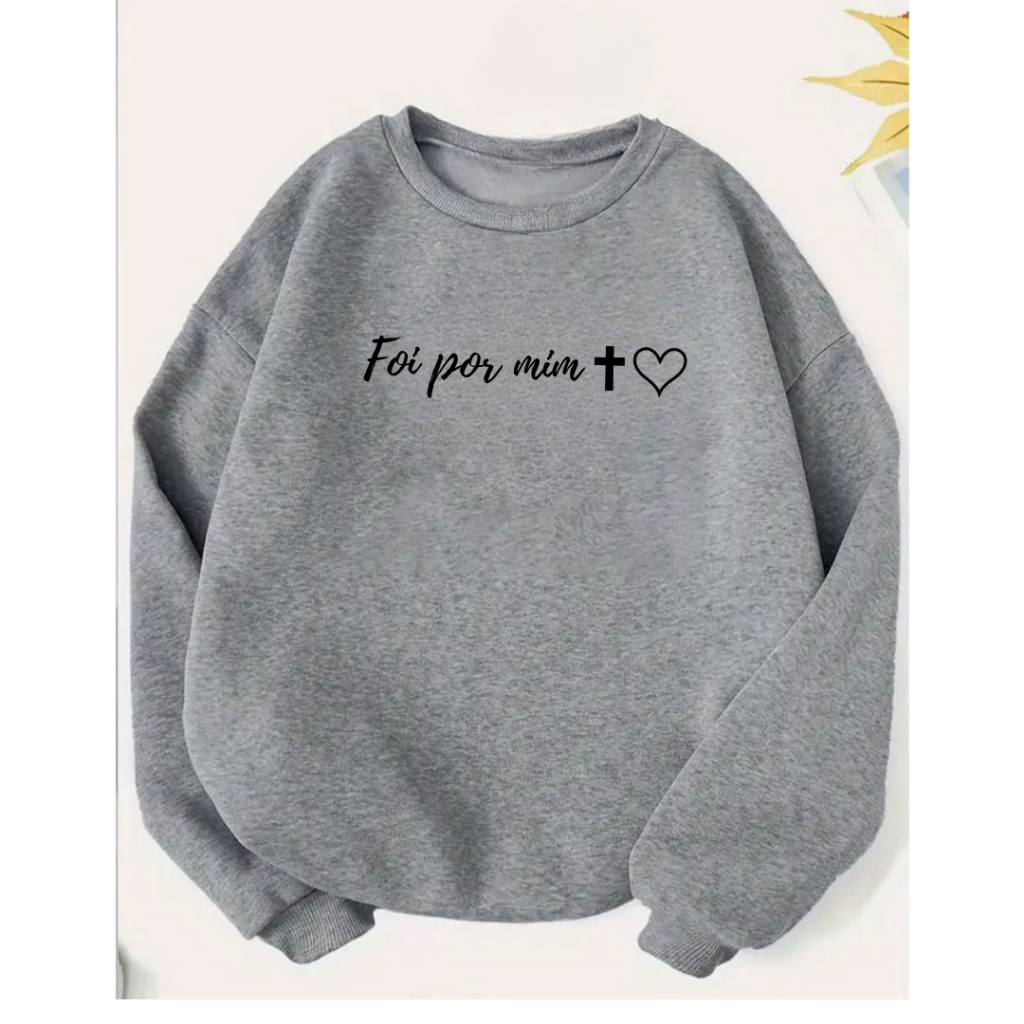 Moletom Sweatshirt Gospel Foi Por Mim Design Minimalista Com Fé Amor Estilo Cristão Cruz Coração Blusa de Frio feminino