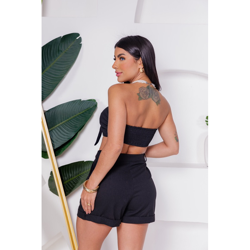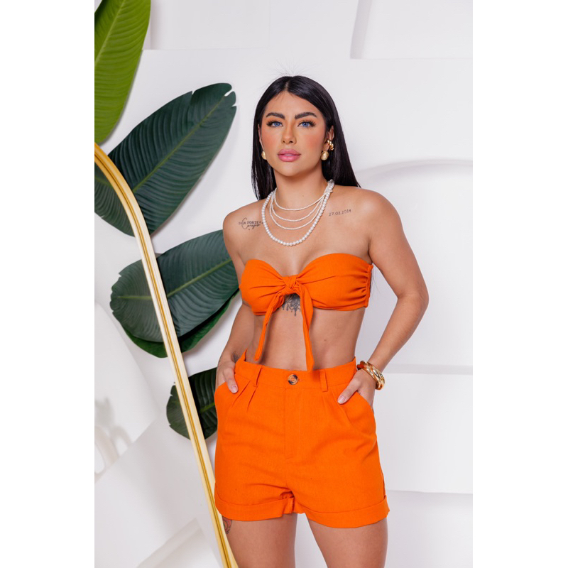 conjuto top e short em linho moda verão
