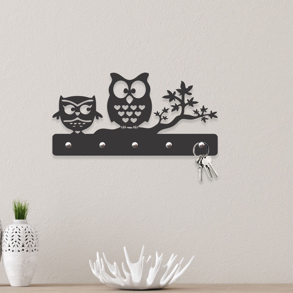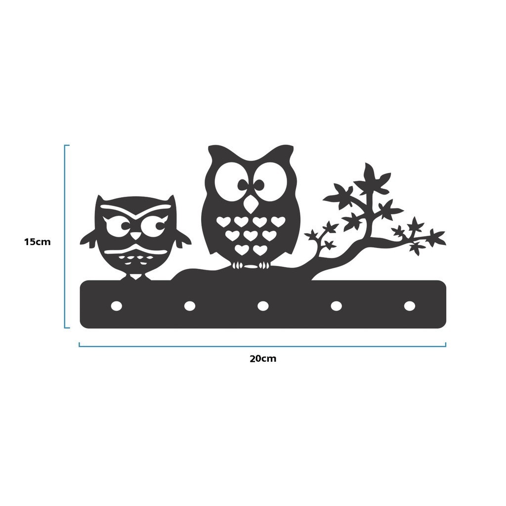 Porta Chaves Porta Chaves Corujinhas em Mdf Vazado de 3mm Preto Fosco