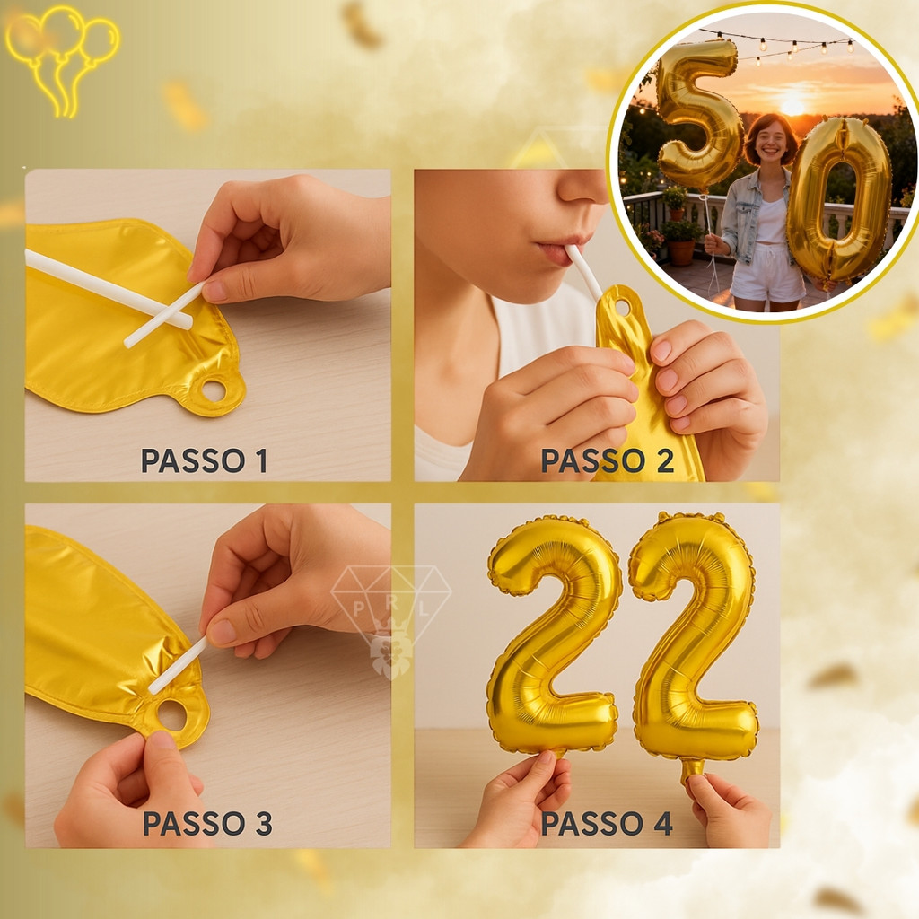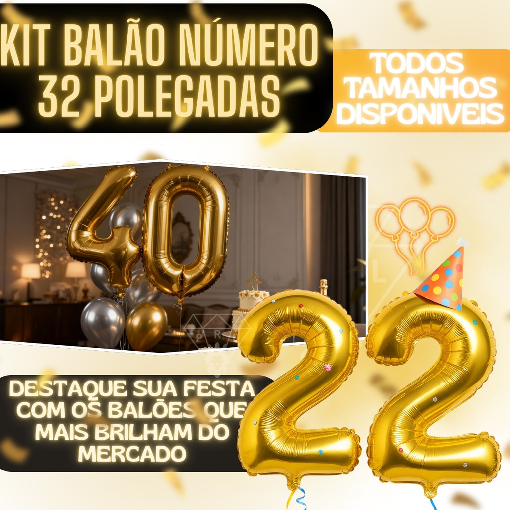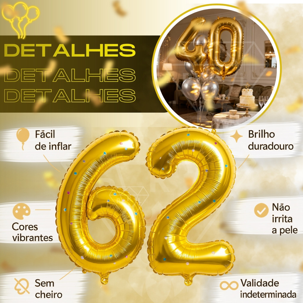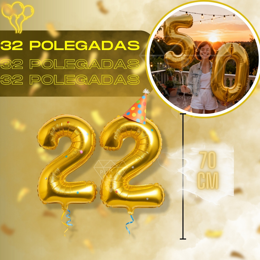 Kit 2 Balão 32 Pol Metalizado Número 70 CM Balões Bexiga Aniversário Festas Decorações Dourado