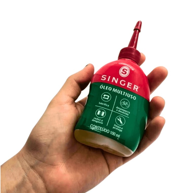 Kit bombinha aplicadora de óleo profissional Almotolia 200ml + frasco de óleo Singer 100ml