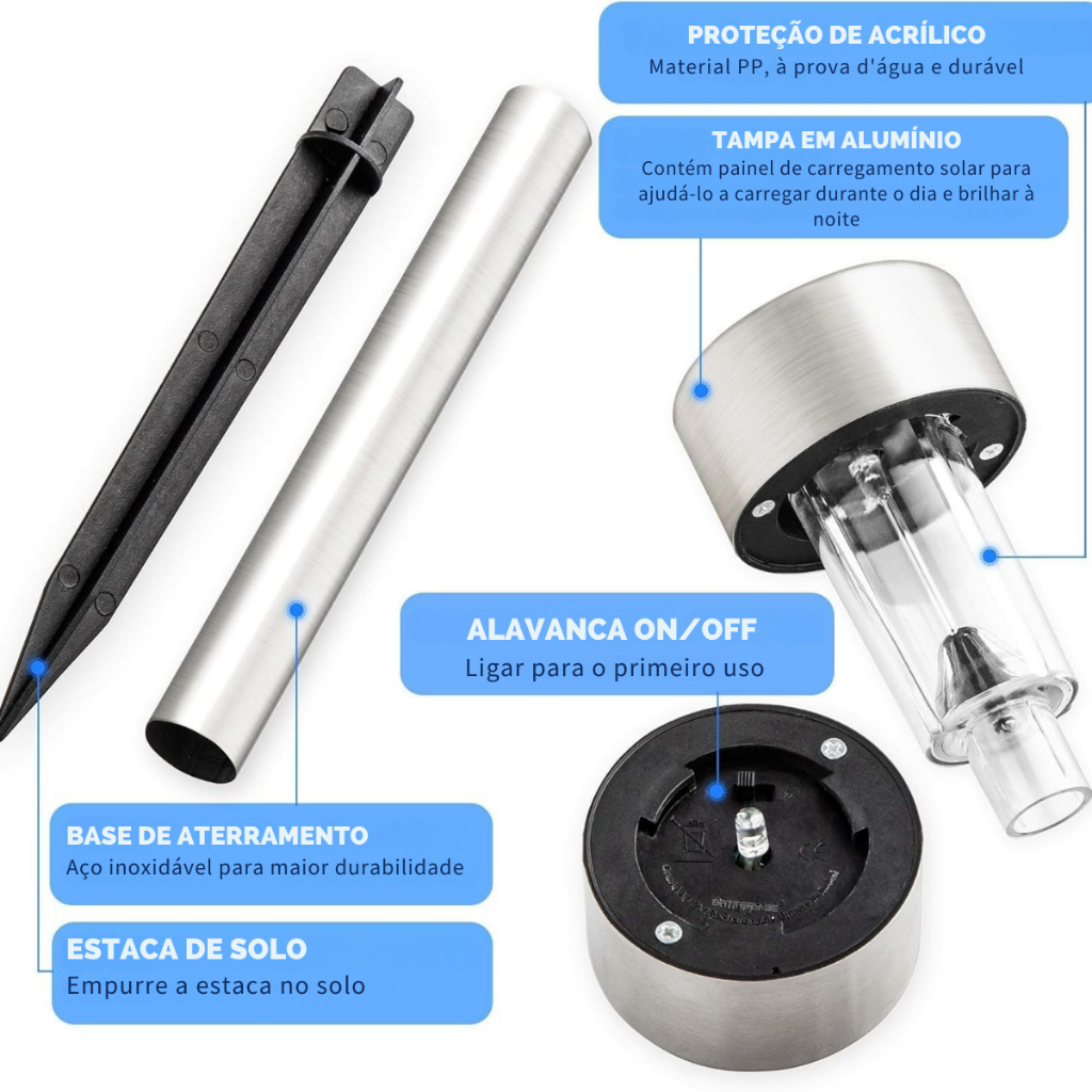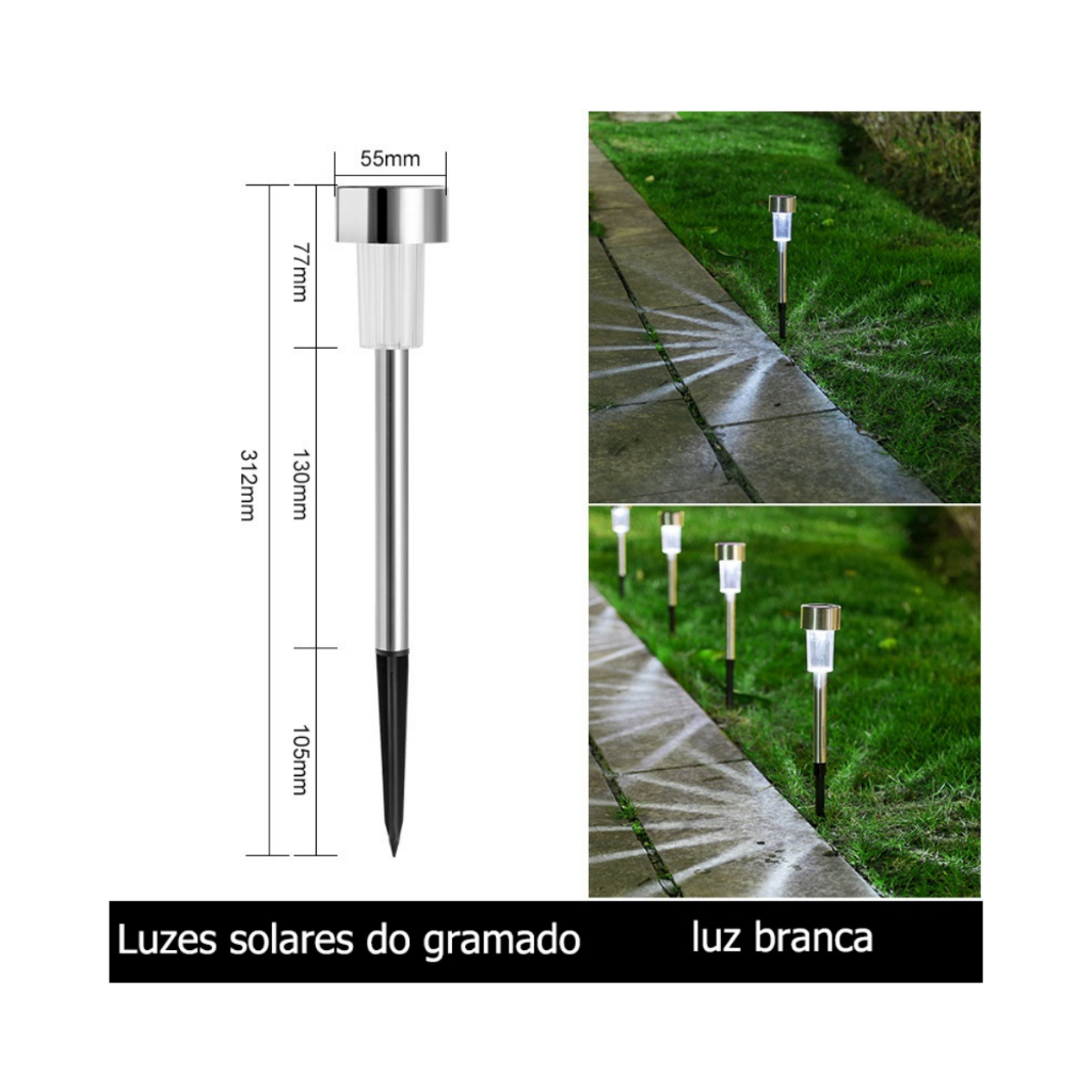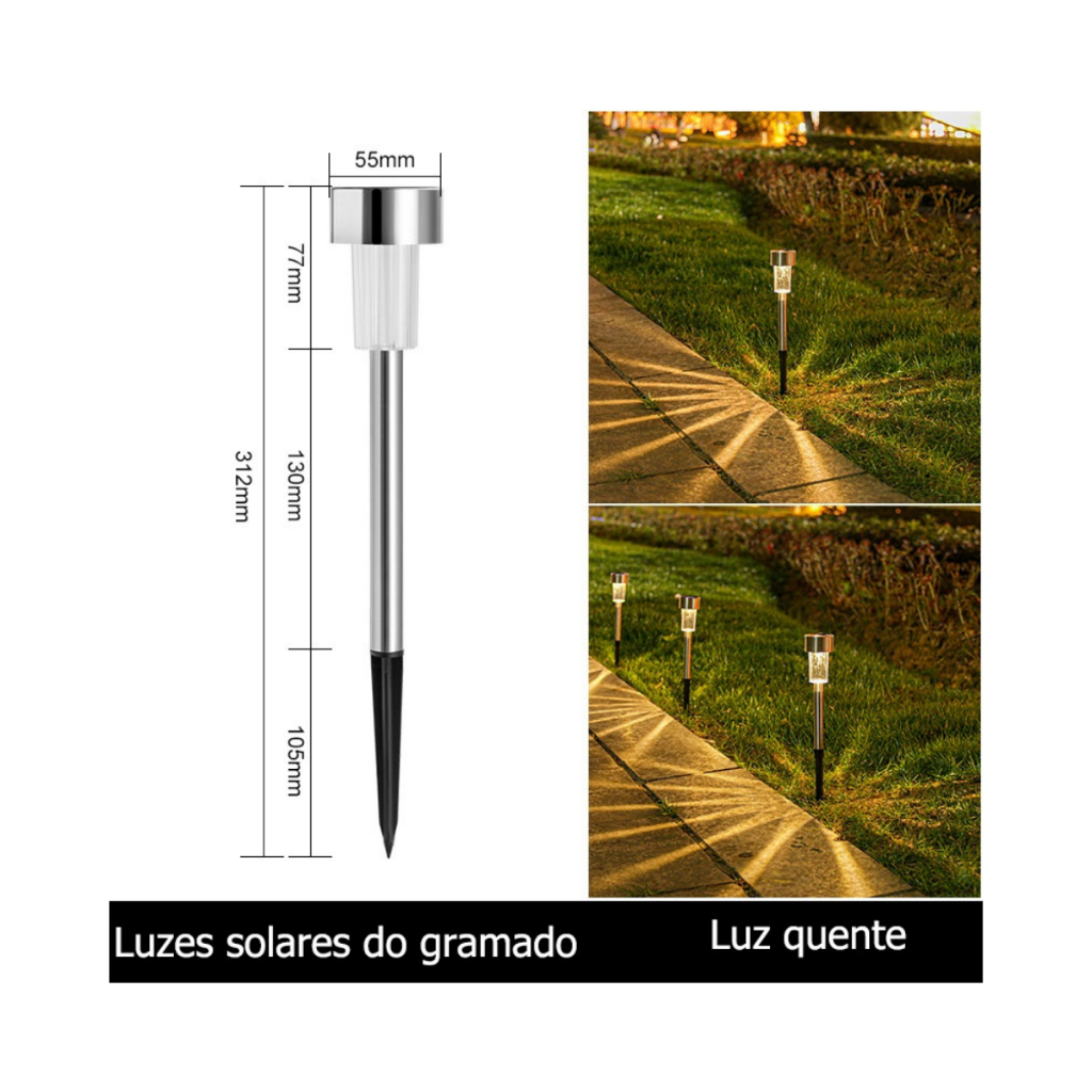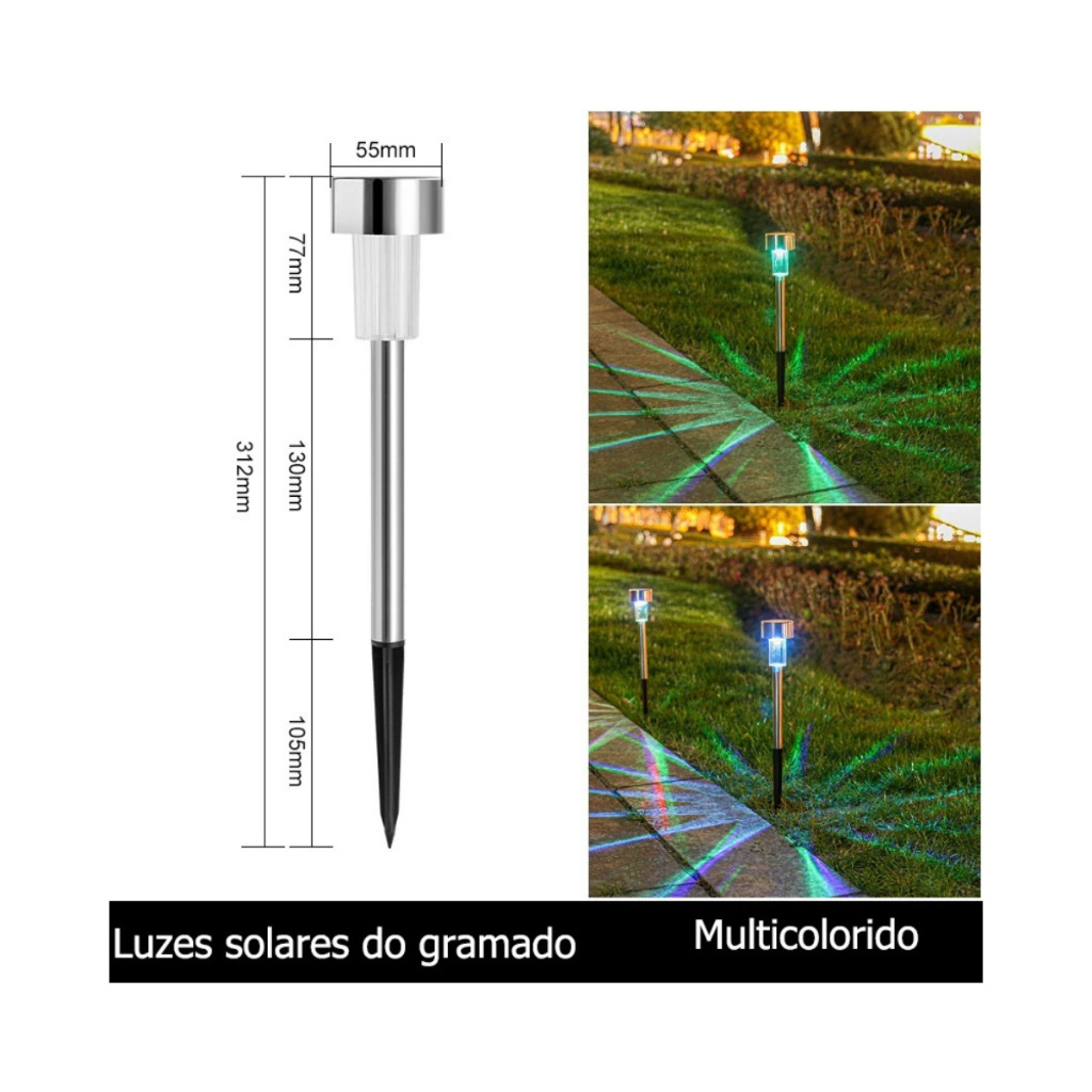 Kit Luminária Solar Balizador Espeto Led 1,2v Chão Prata Jardim Branco Quente Frio RGB Piscina