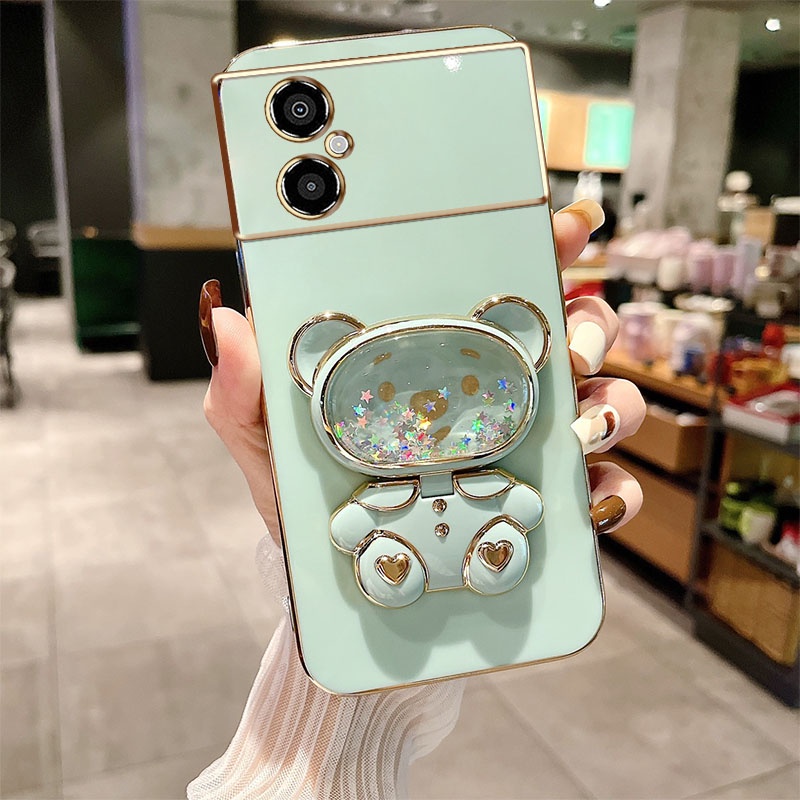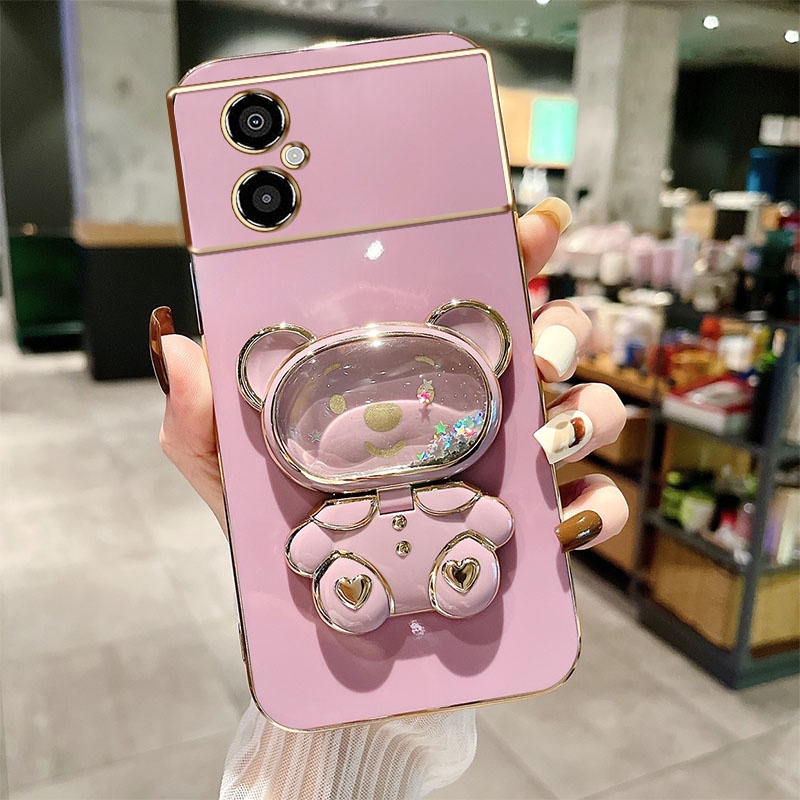 Estojo De Telefone Eletroplatado De Luxo Para Xiaomi POCO M4 5G M5 4G Redmi Nota 11R Suporte De Rolamento Líquido De Areia Movediça Com Espelho De Maquiagem