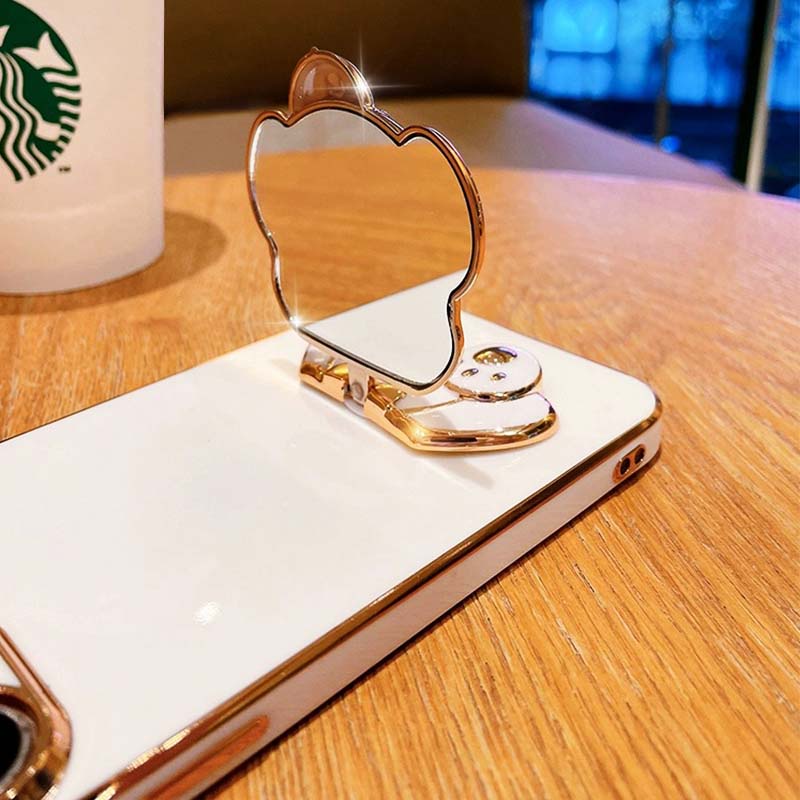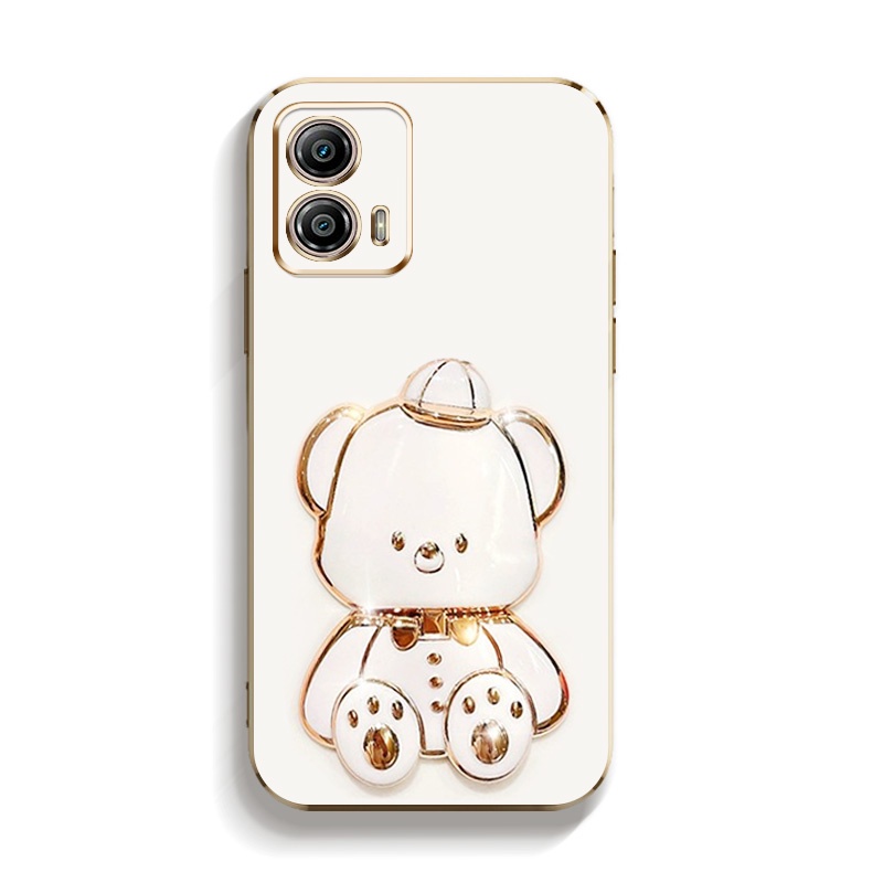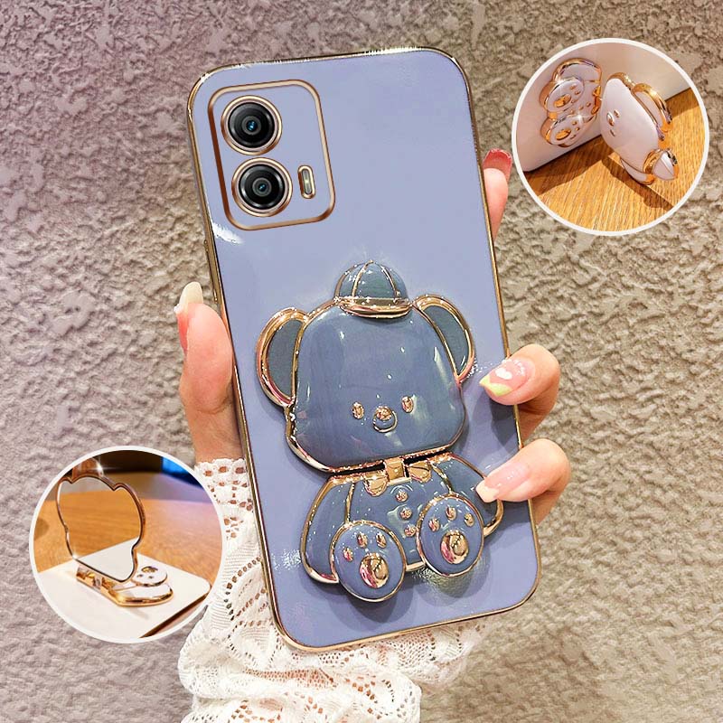 YBD Estojo De Telefone De Suporte De Ursinho Fofo Para Motorola Moto G24 G53 G73 G13 G23 G32 G72 G84 G54 Material TPU Ultra Fino Galvanizado (Com Espelho De Maquiagem)