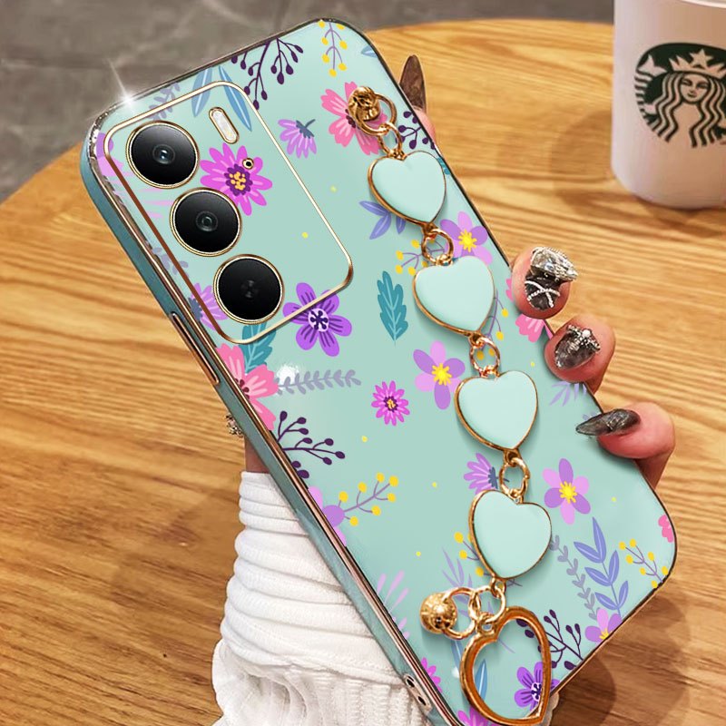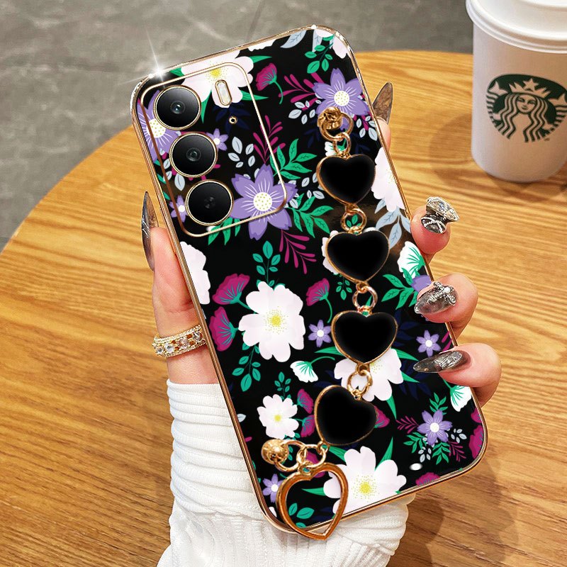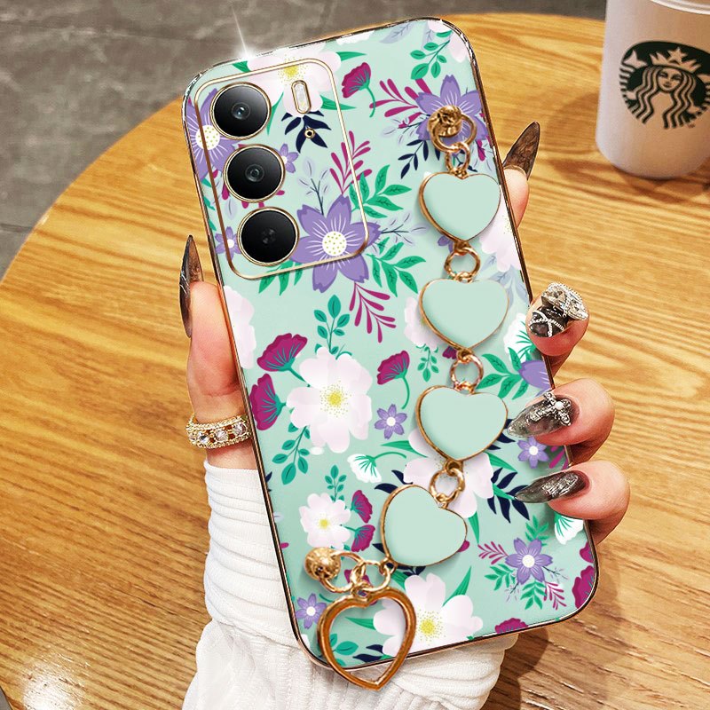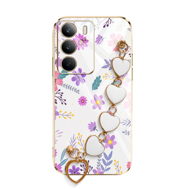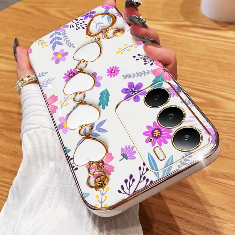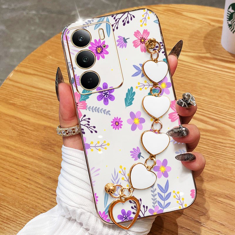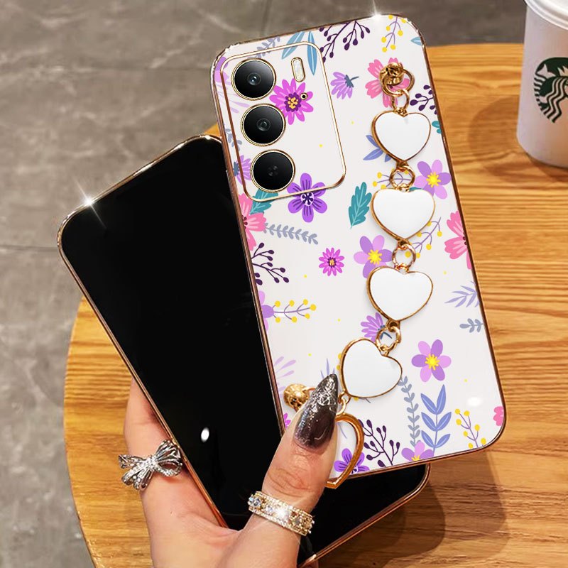 Capa De Telefone YBD Para OPPO A5 A5i Pro 4G 5G Pulseira Em Formato De Coração Com Tela Cheia Flores Frescas Roxas