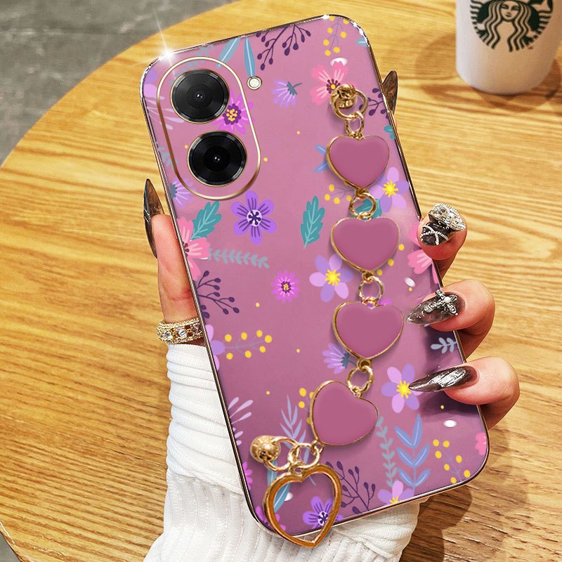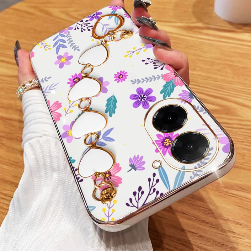 YBD Capa De Telefone Para Redmi A5 4G Xiaomi POCO C71 F7 5G Pulseira Em Forma De Coração Com Tela Cheia Flores Frescas R