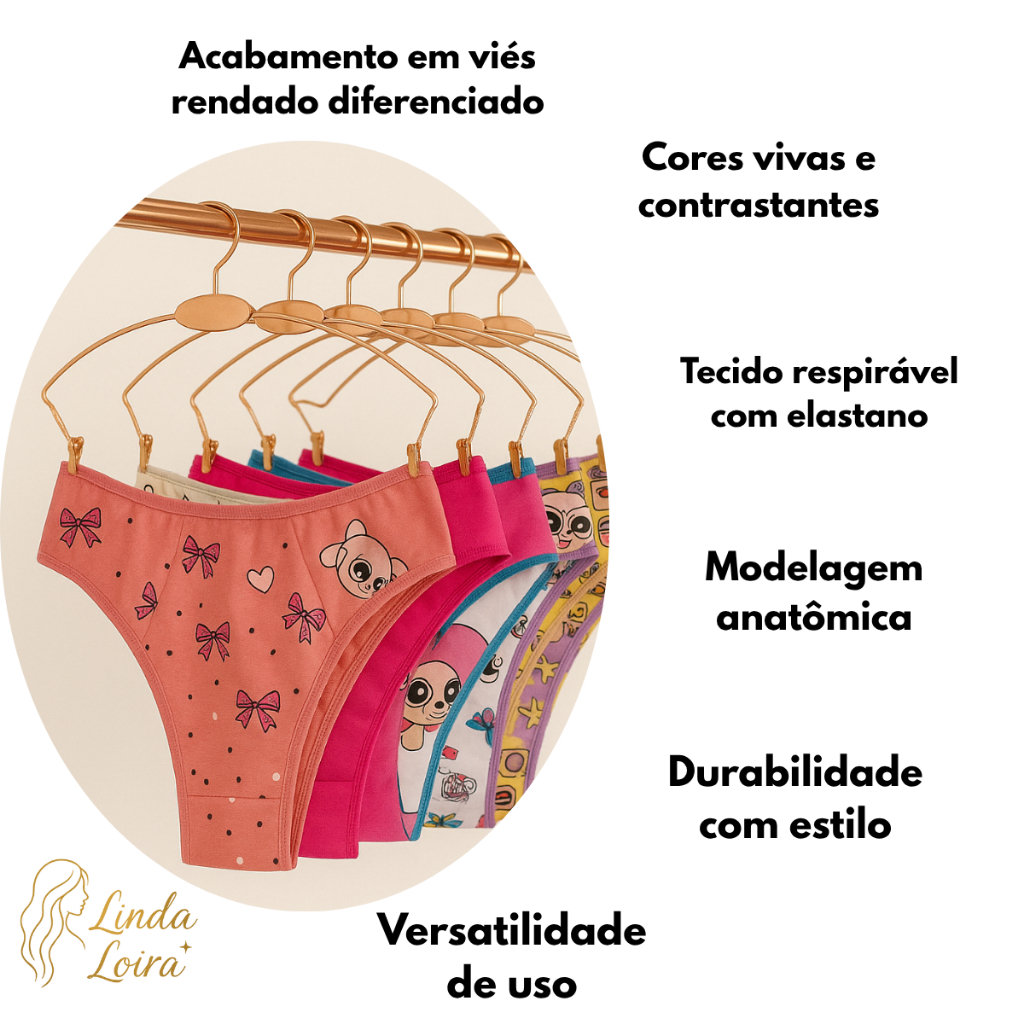 Kit Calcinhas Para Meninas de Algodão Juvenil Calcinha