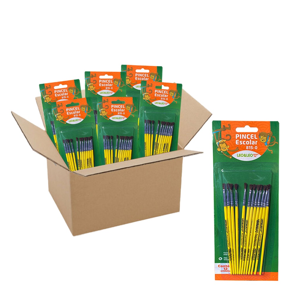 Kit 144 Pincel Pintura Escolar Guache Leo&Leo