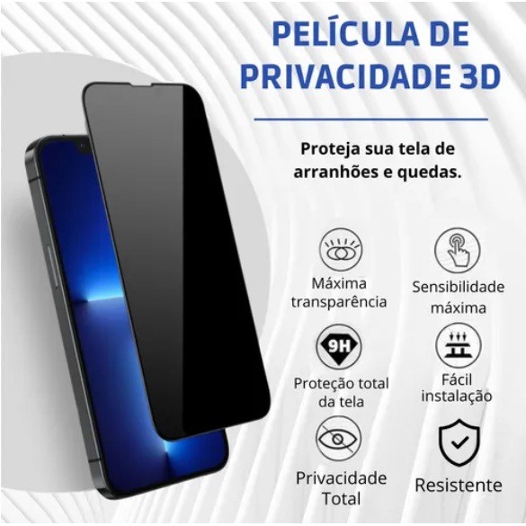 Película De Vidro 3D Privacidade IPhone 16E/16/16 Plus/16 Pro/16 Pro Max/14 /14 pro/14 max /14 pro max Anti Spy Protetor