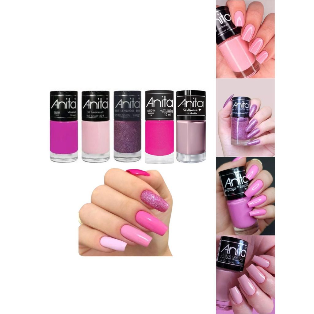 KIT 10 ESMALTES ANITA - TONS NUDE E ROSA