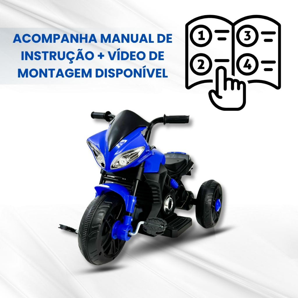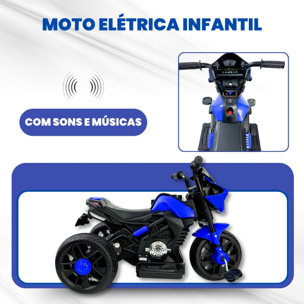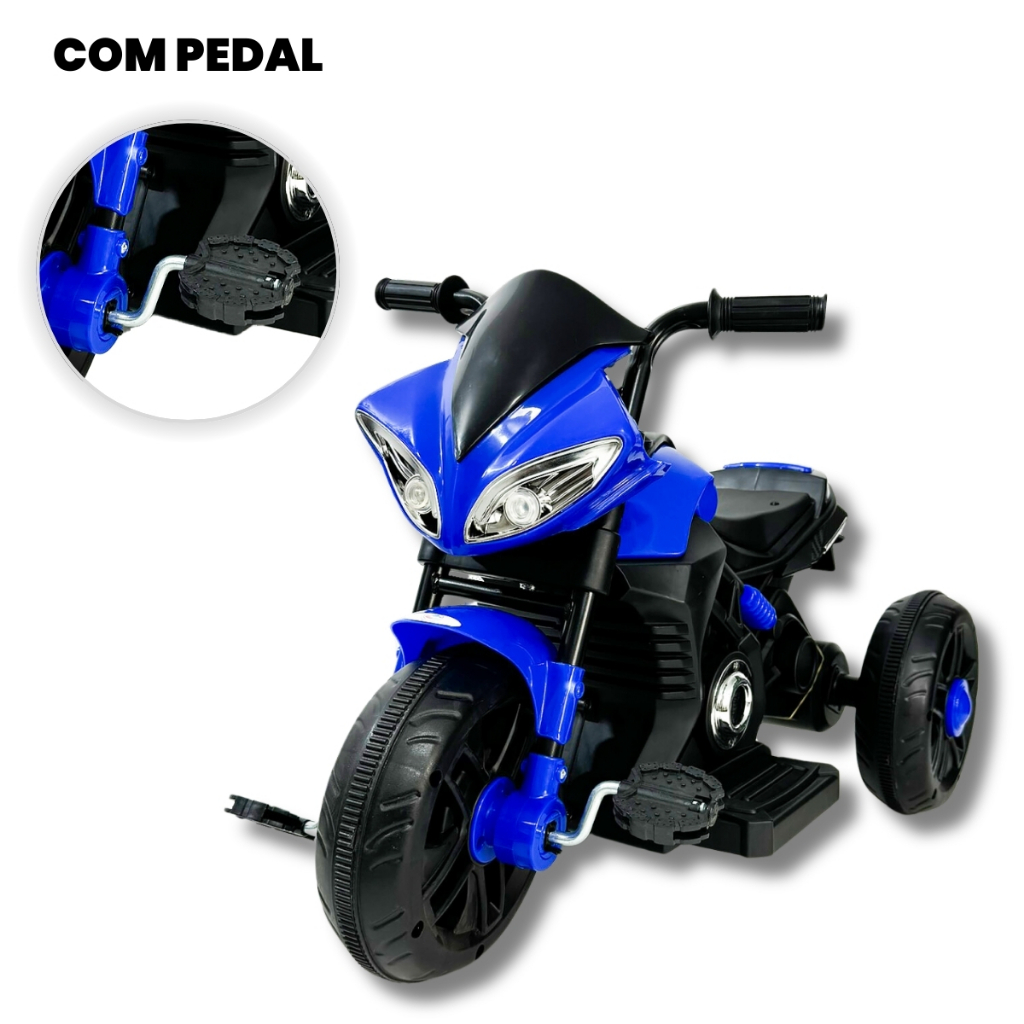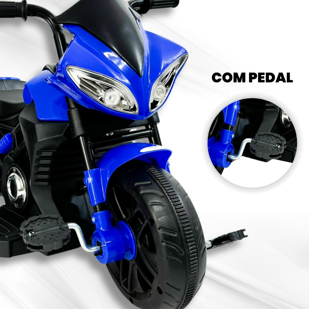 Moto Pedal Elétrica Infantil 2 em 1 Azul Farol Buzina Sons Unitoys