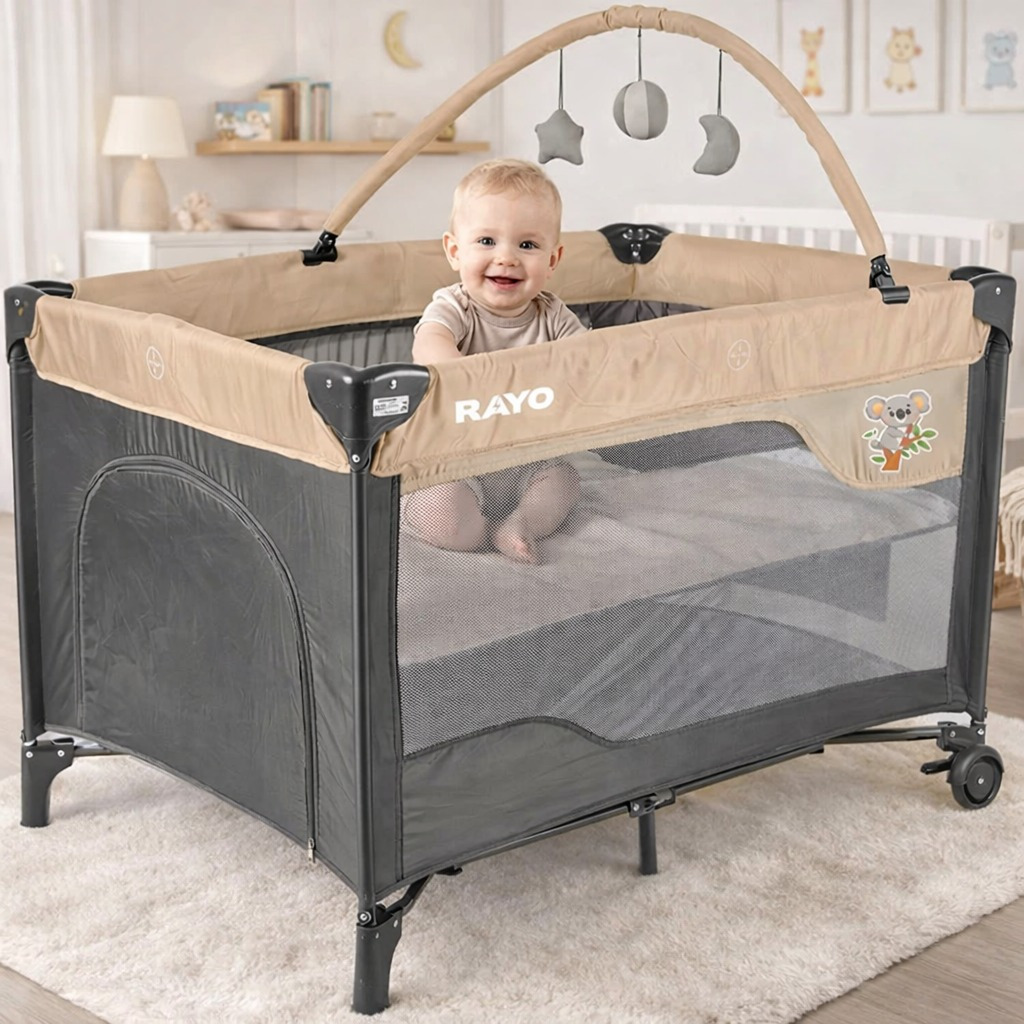 Berço Infantil 2 Alturas Cercadinho Portátil Demontavel Premium Cercado Com Mobile Rayo Mosquiteiro