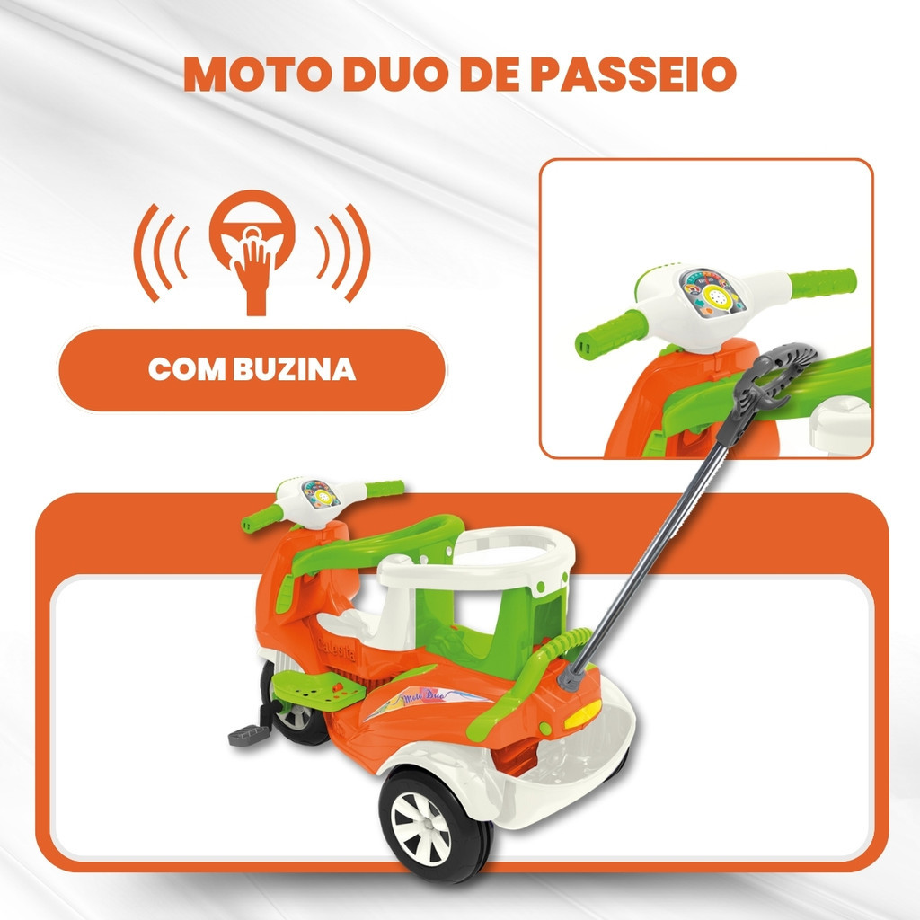 Carrinho De Passeio - Moto Duo Calesita - Motoquinha Para Gêmeos, Irmãos - Com Empurrador e Pedal