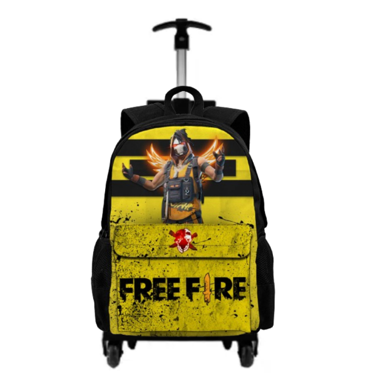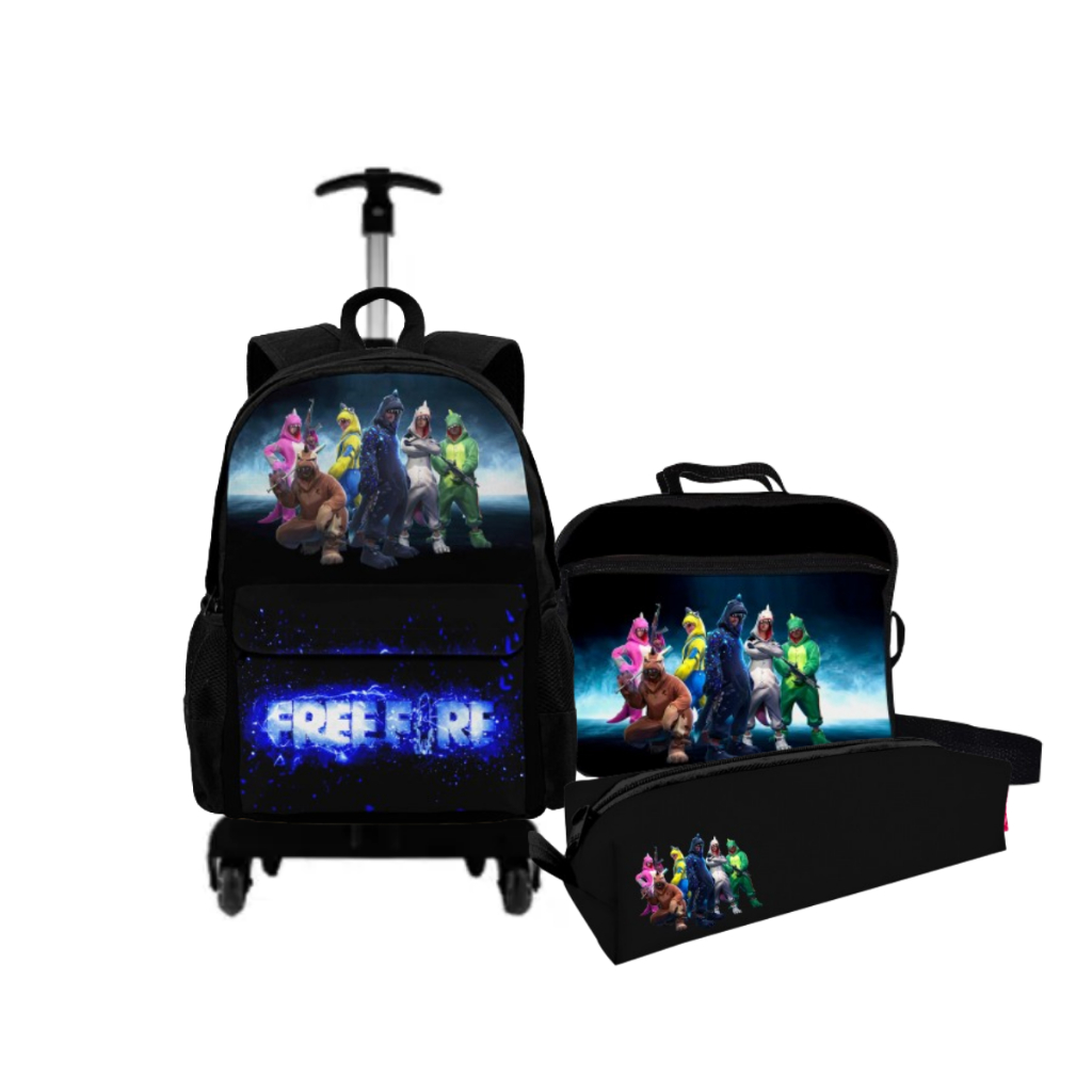 Kit Mochila Rodinha Free Fire Com Estojo Lancheira Bolsa Escolar Reforçada Volta Às Aulas Ajustável