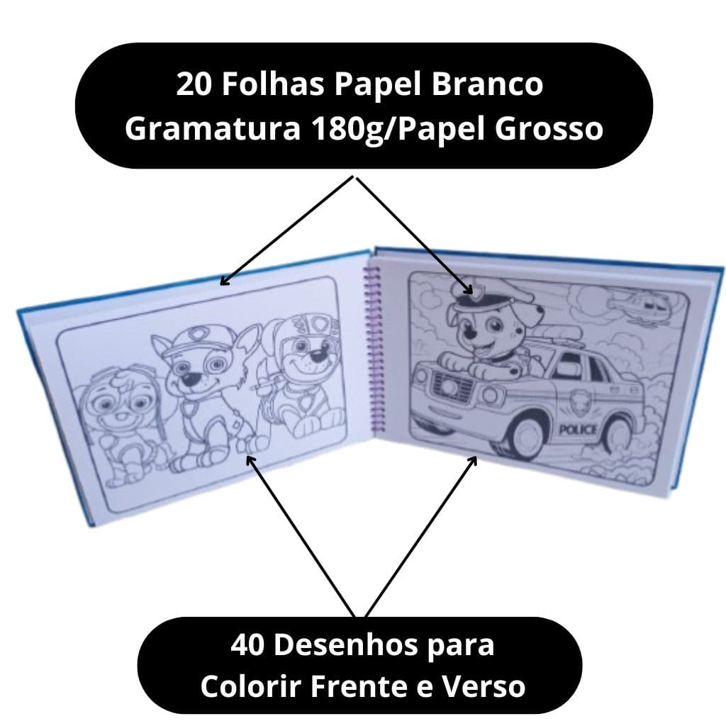 Livro de Colorir Patrulha Canina Capa Dura 40 Desenhos Frente e Verso