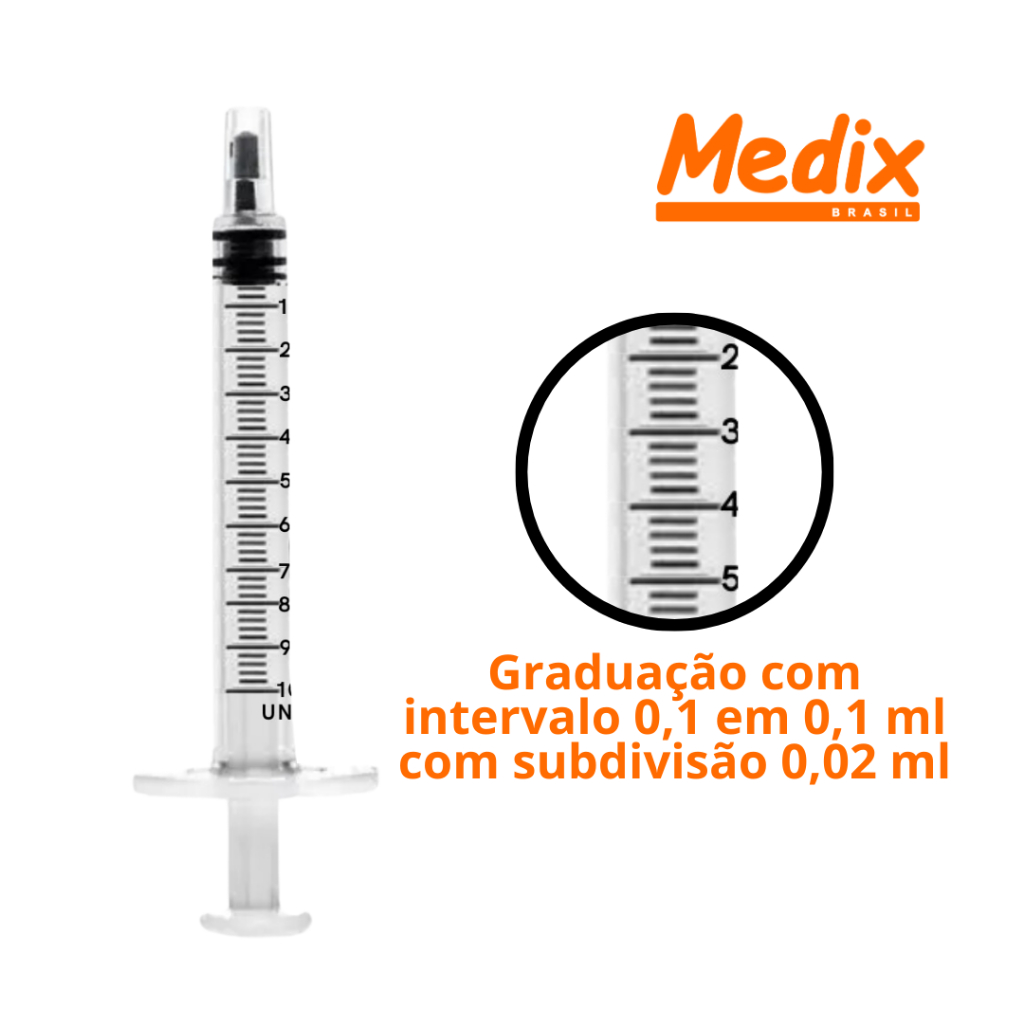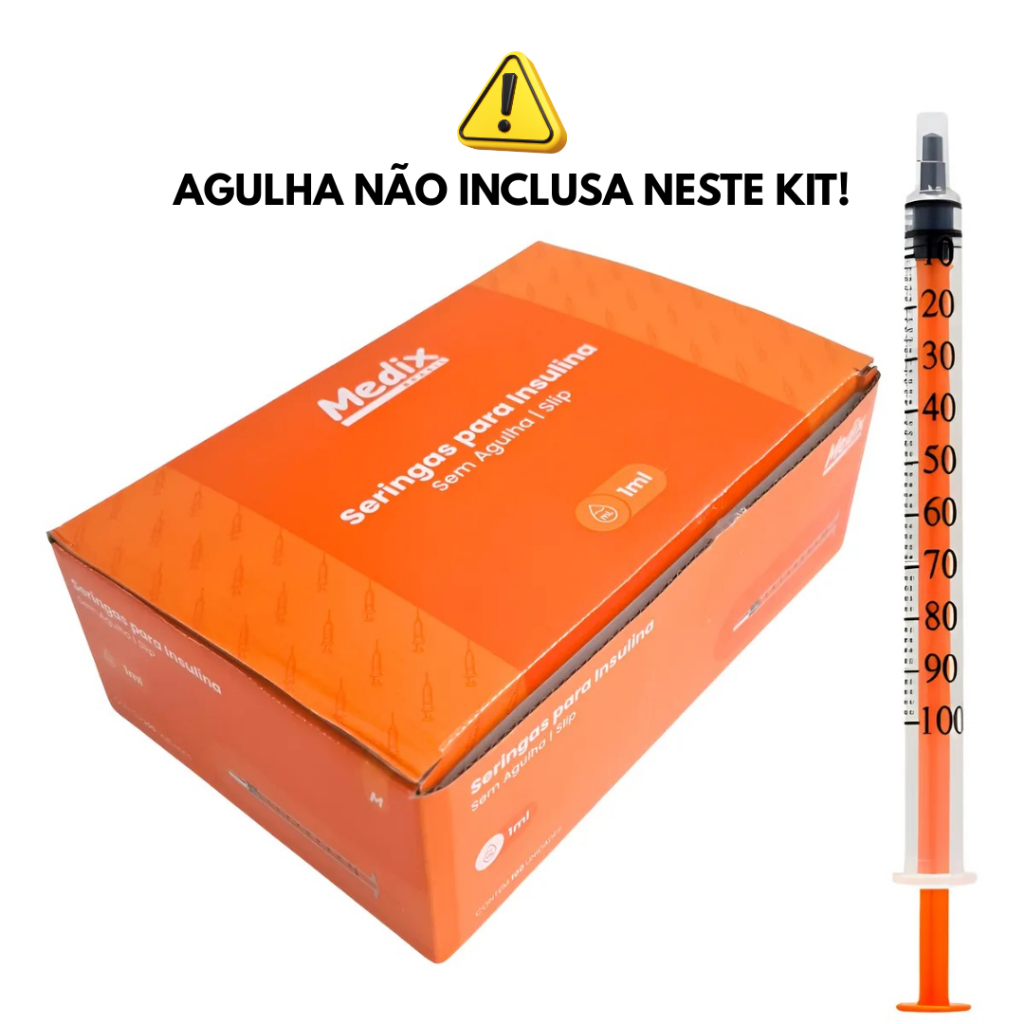 Kit 100 Seringa 1ml SEM Agulha Luer Slip para Insulina Estéril Descartável Resíduo Medix