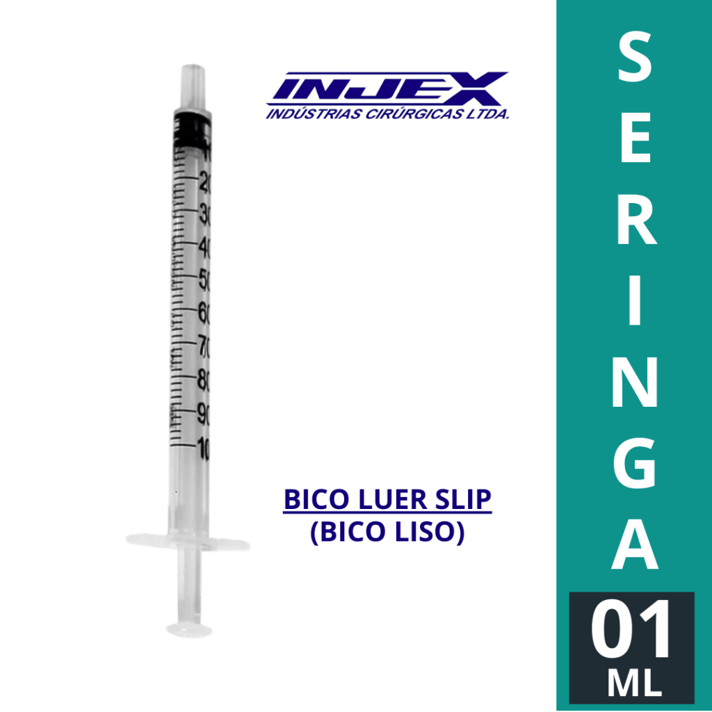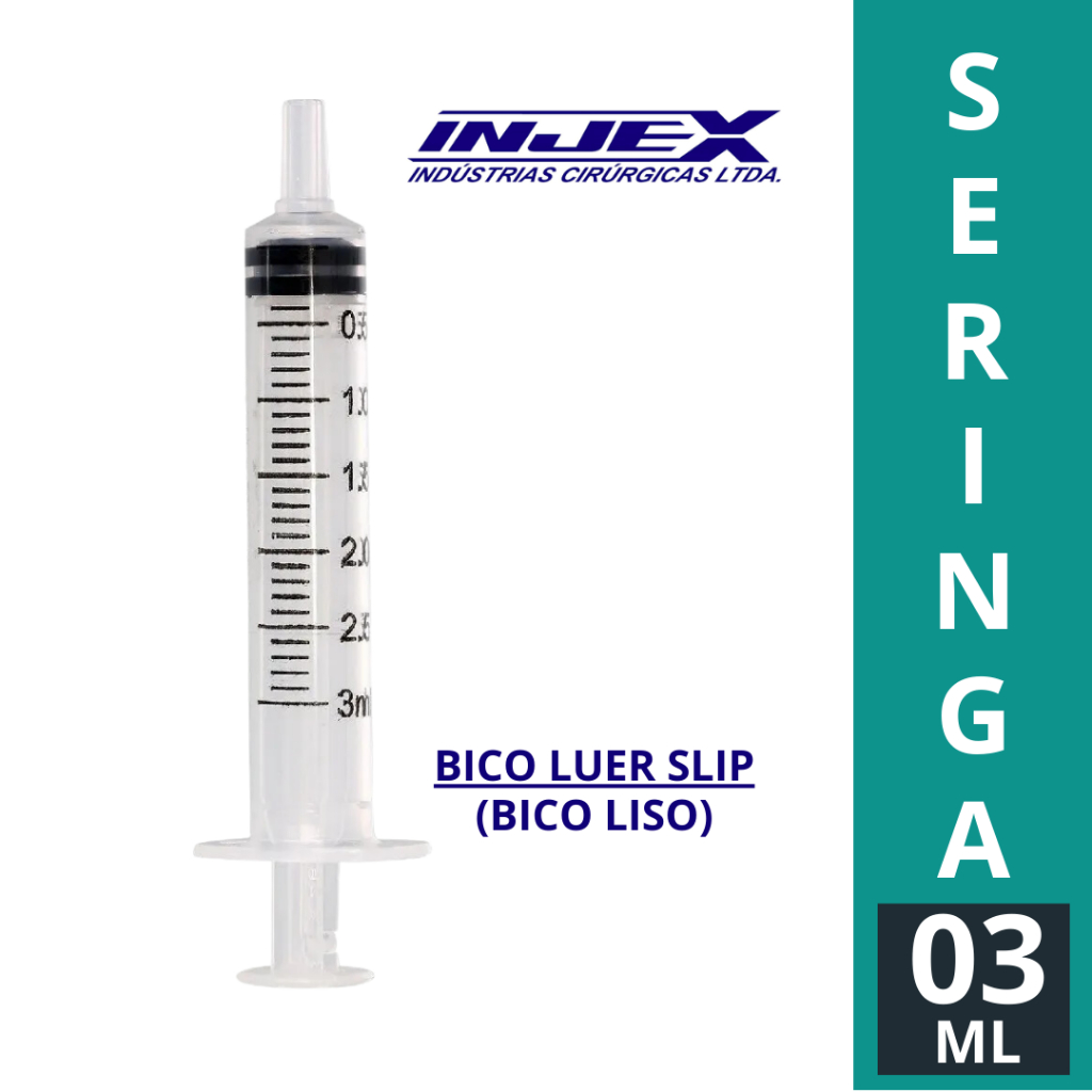 Kit 50 Seringas 1ml 3 ml e 5ml Injex Bico Luer Slip (Bico Liso) Estéril Sem Agulha Sem Latex