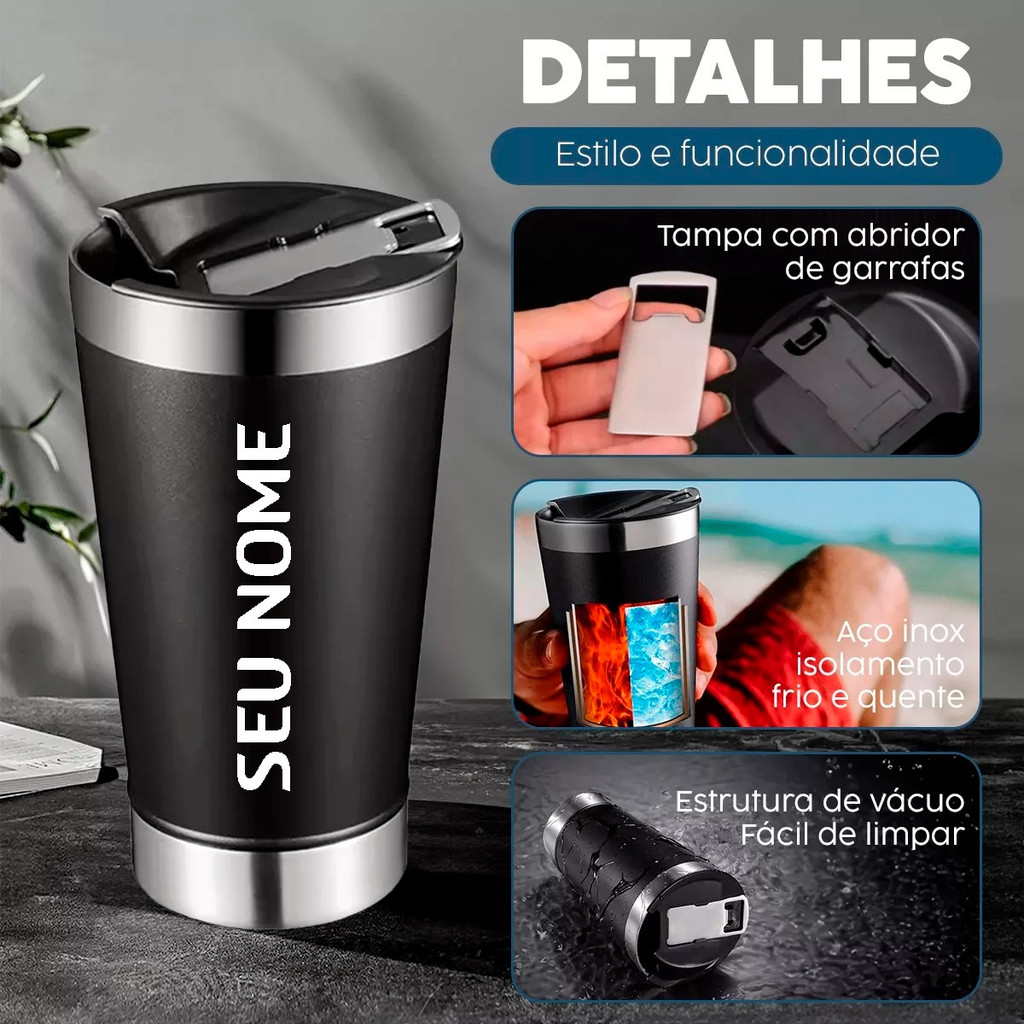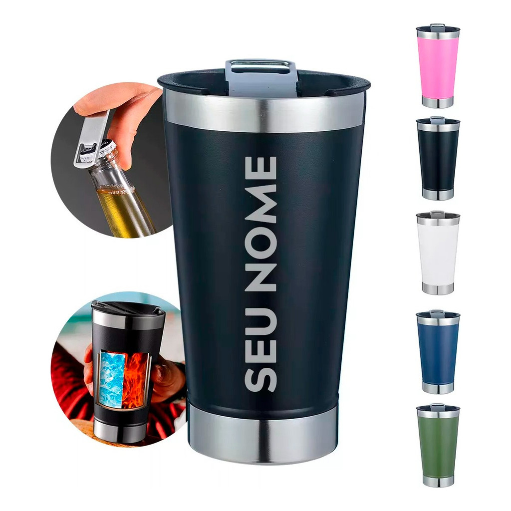 Kit 3 Copos Térmico Personalizado C/ Nome Logo Tampa Abridor