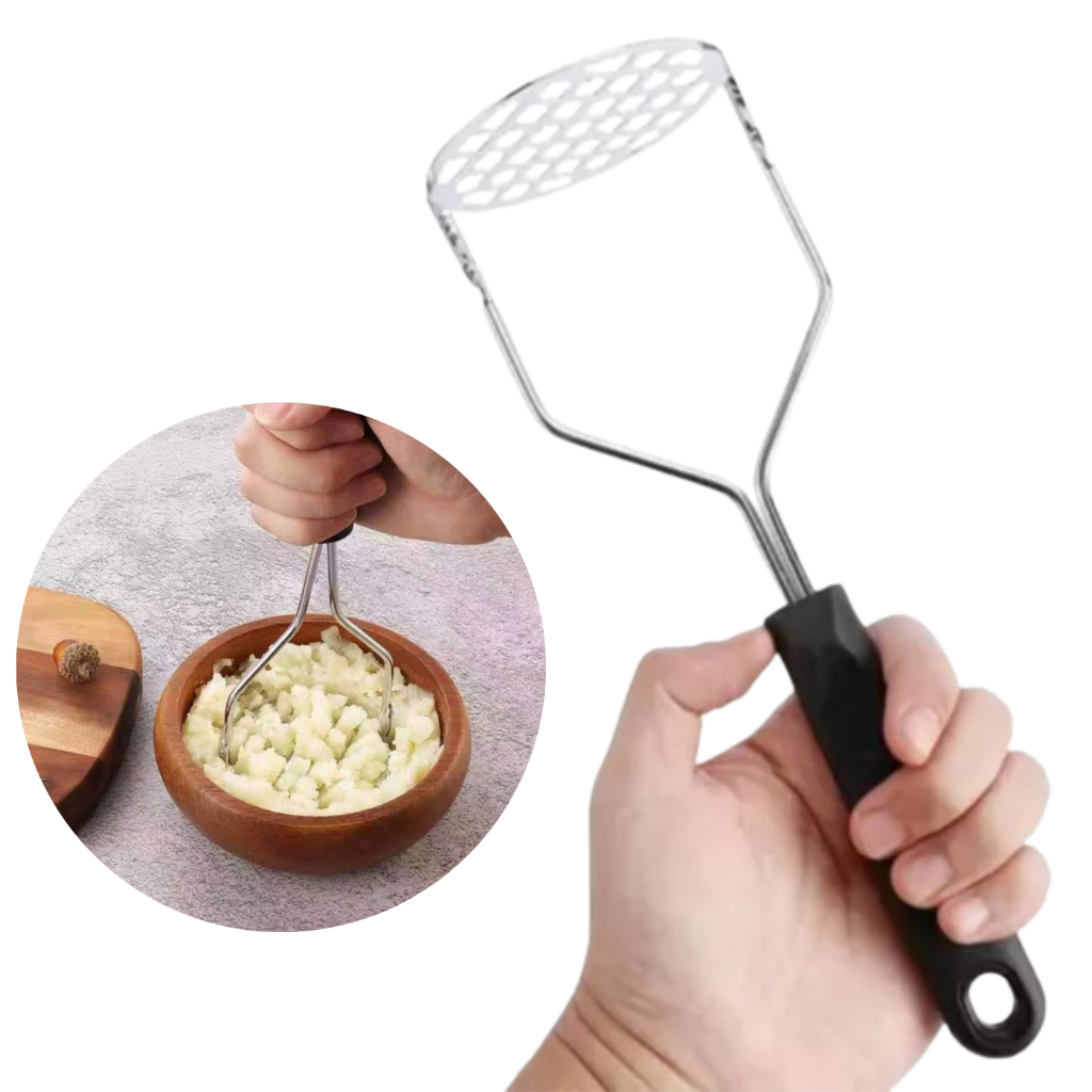 Amassador Espremedor de Batatas Manual Aço Inox Amassar Legumes Purê Feijão Com Cabo De Plástico