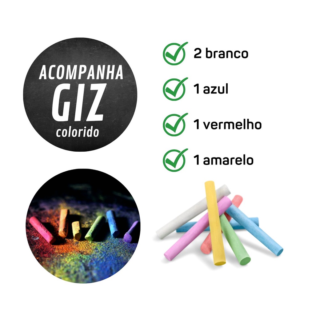 Adesivo PVC Lousa Quadro 45cm x 2m Com Giz Colorido