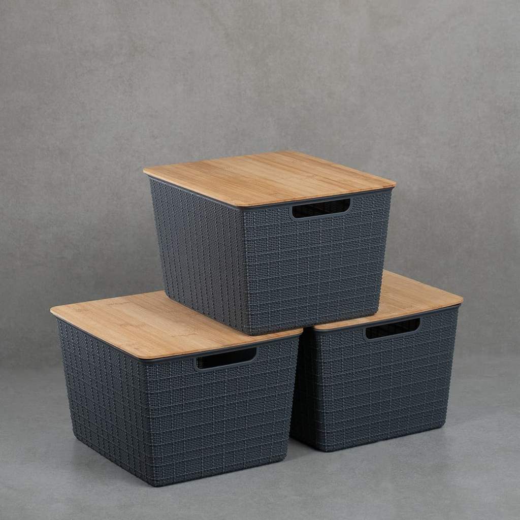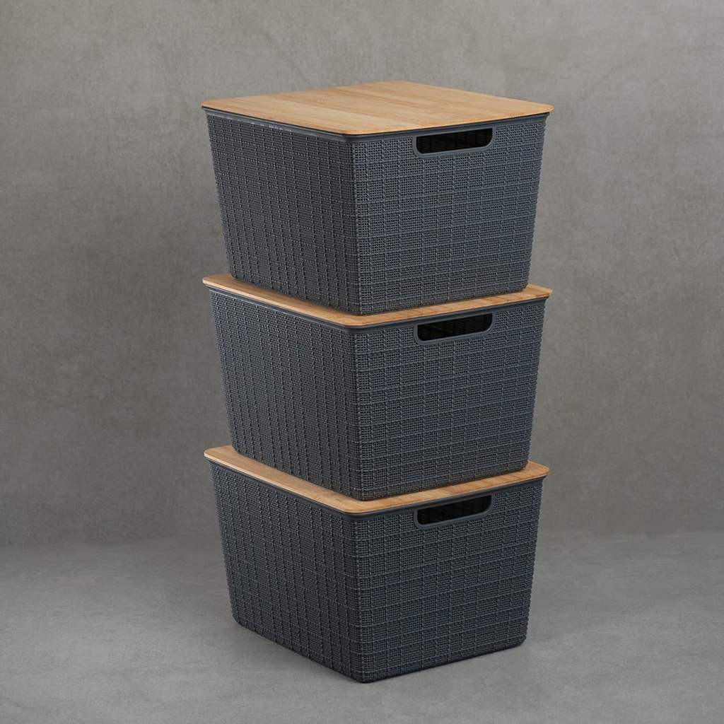 Kit 3 Caixas Organizadoras Tampa de Bambu 18l Cinza - Oikos