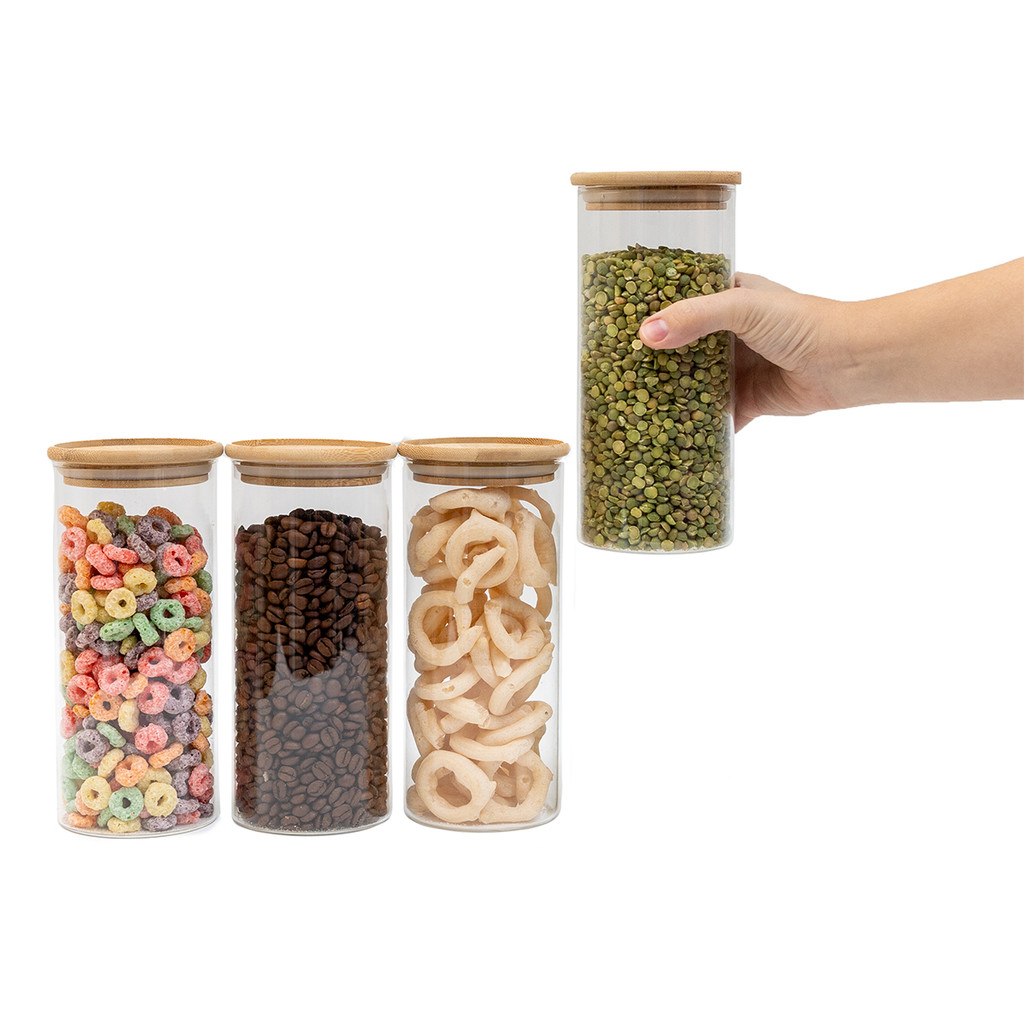 Kit 4 Potes de Vidro Empilhável Hermético Tampa Bambu 800ml Oikos