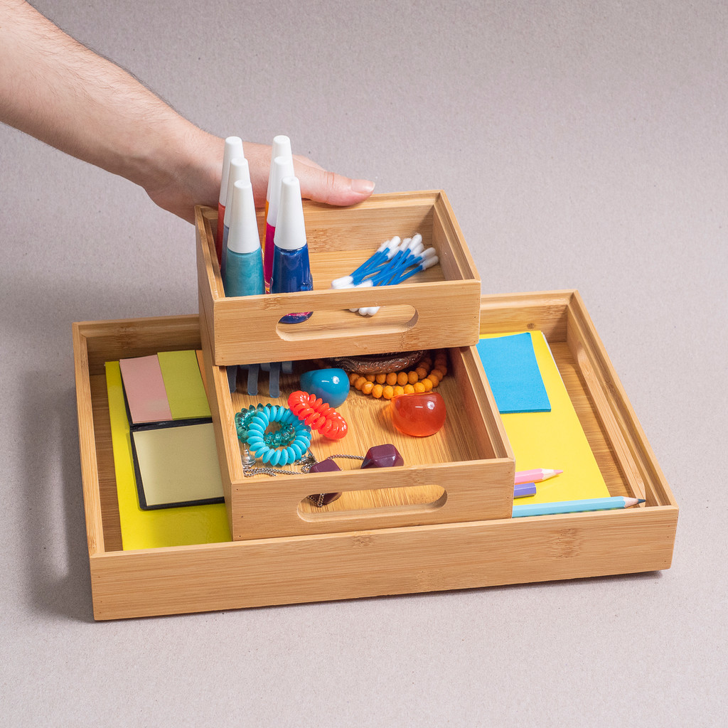 Caixa Vazada de Bambu Empilhável 22x15,1x4,5cm - Oikos