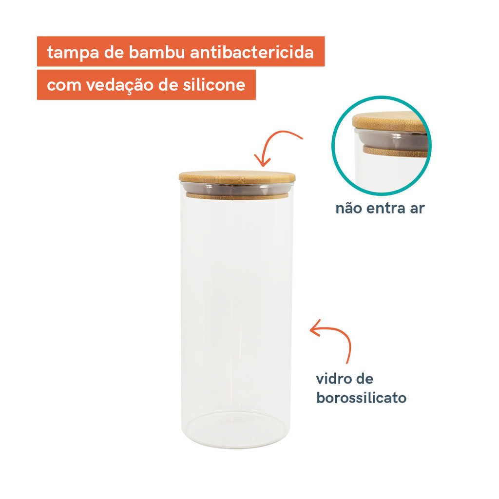 Potes de Vidro P/ Mantimentos C/ Tampa Bambu Oikos - 7 Pçs