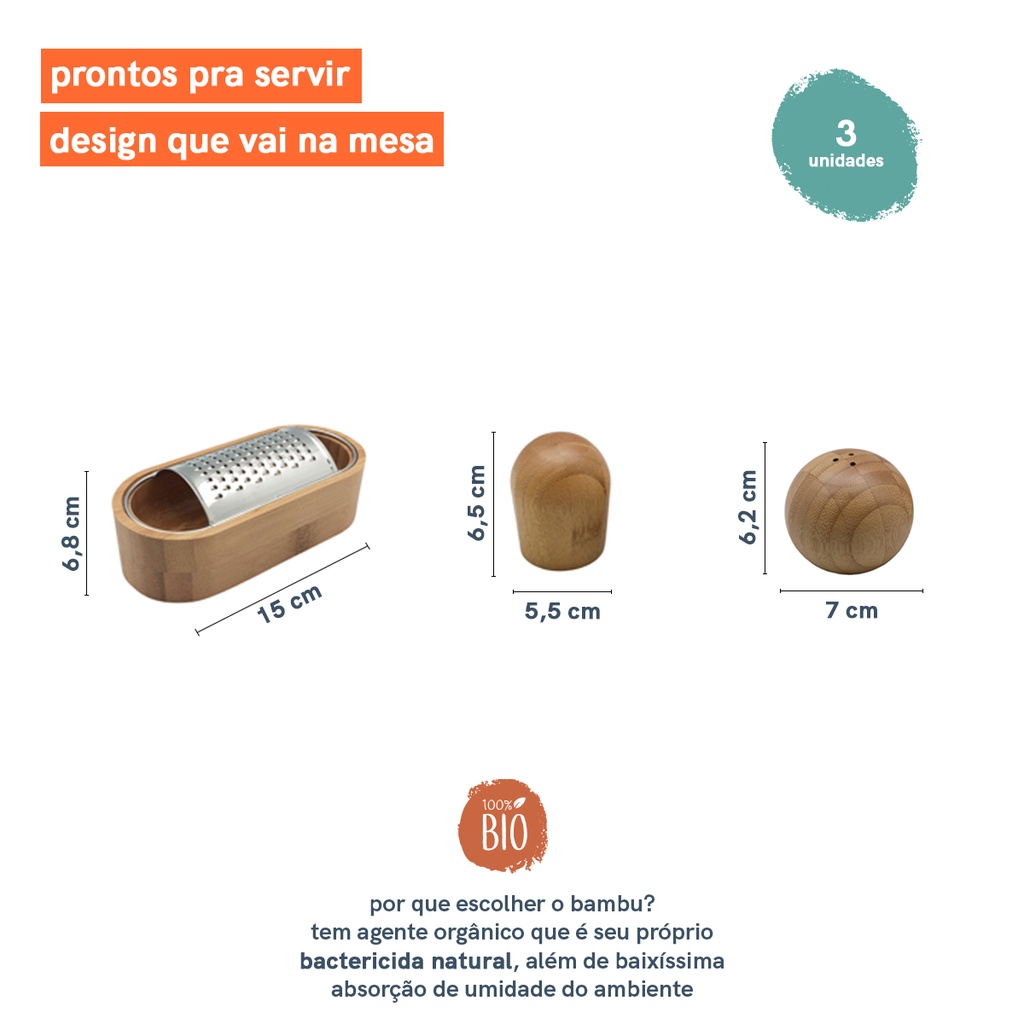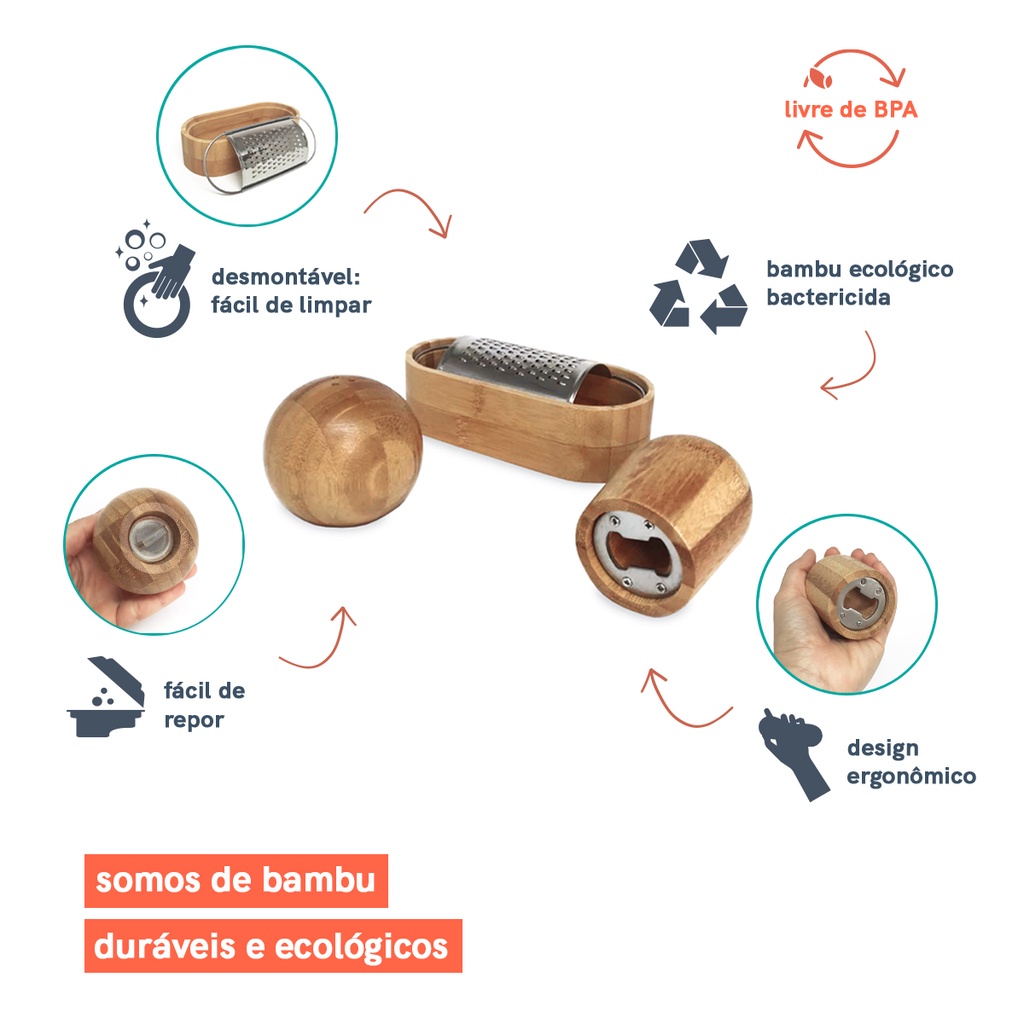 Kit ralador, abridor e saleiro de bambu - Oikos