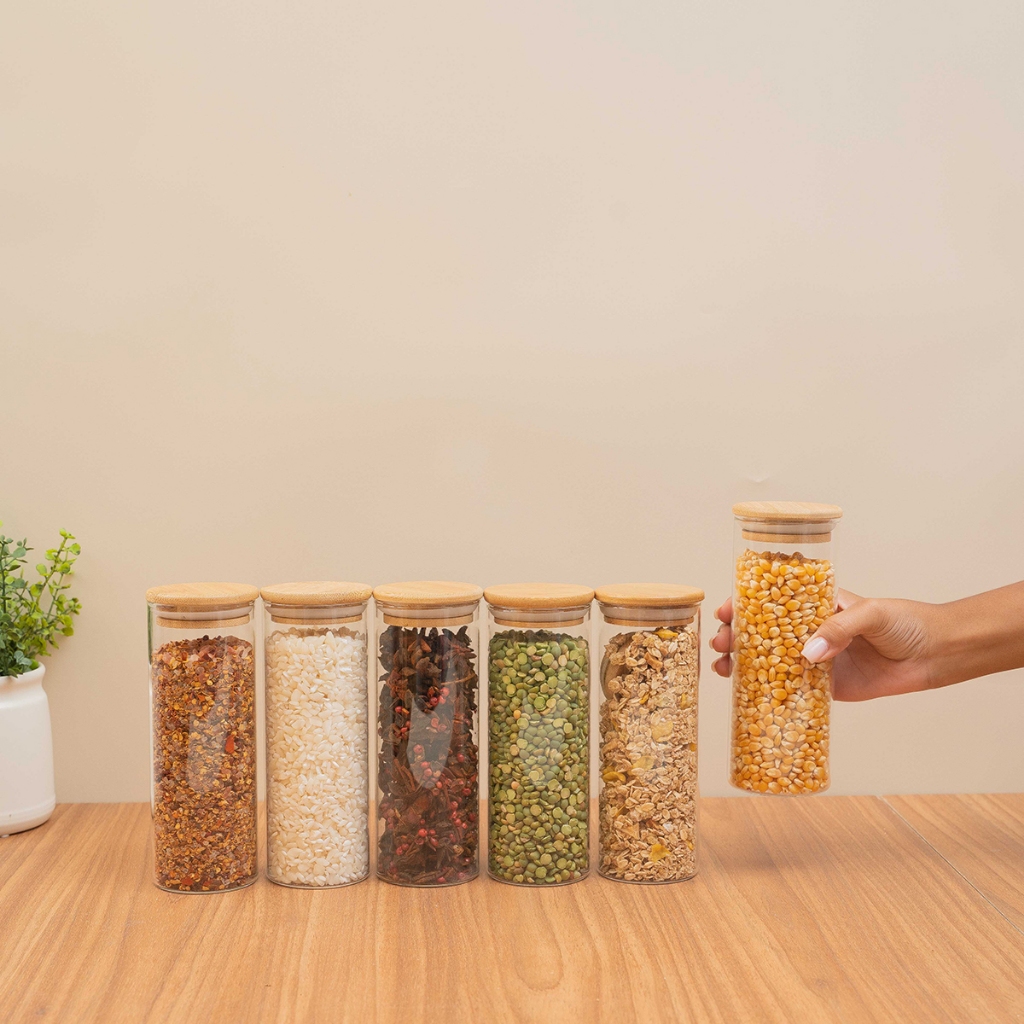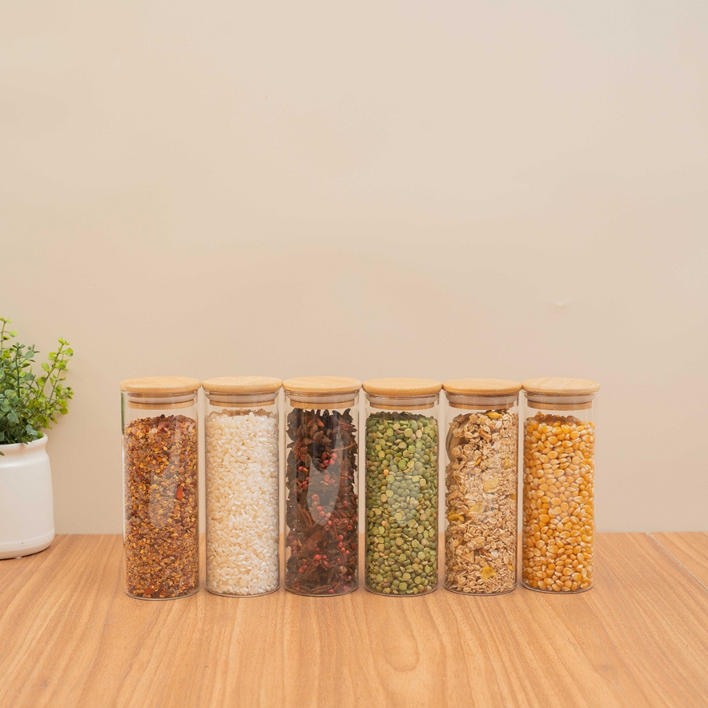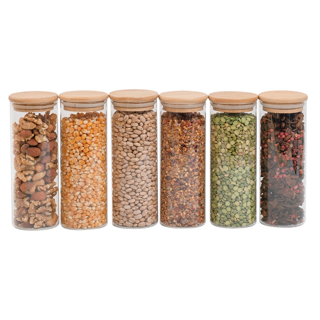 Kit 6 Potes de Vidro P/ Mantimentos 450ml C/ Tampa Bambu Oikos