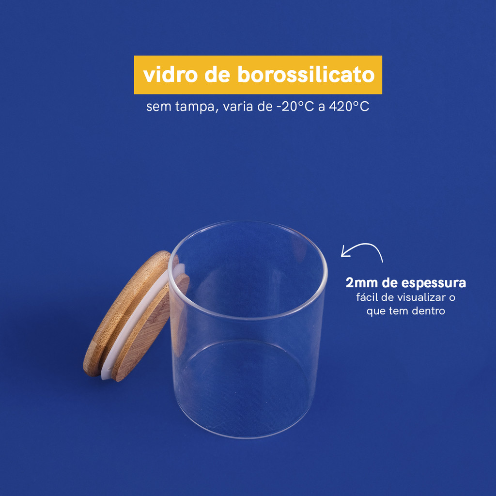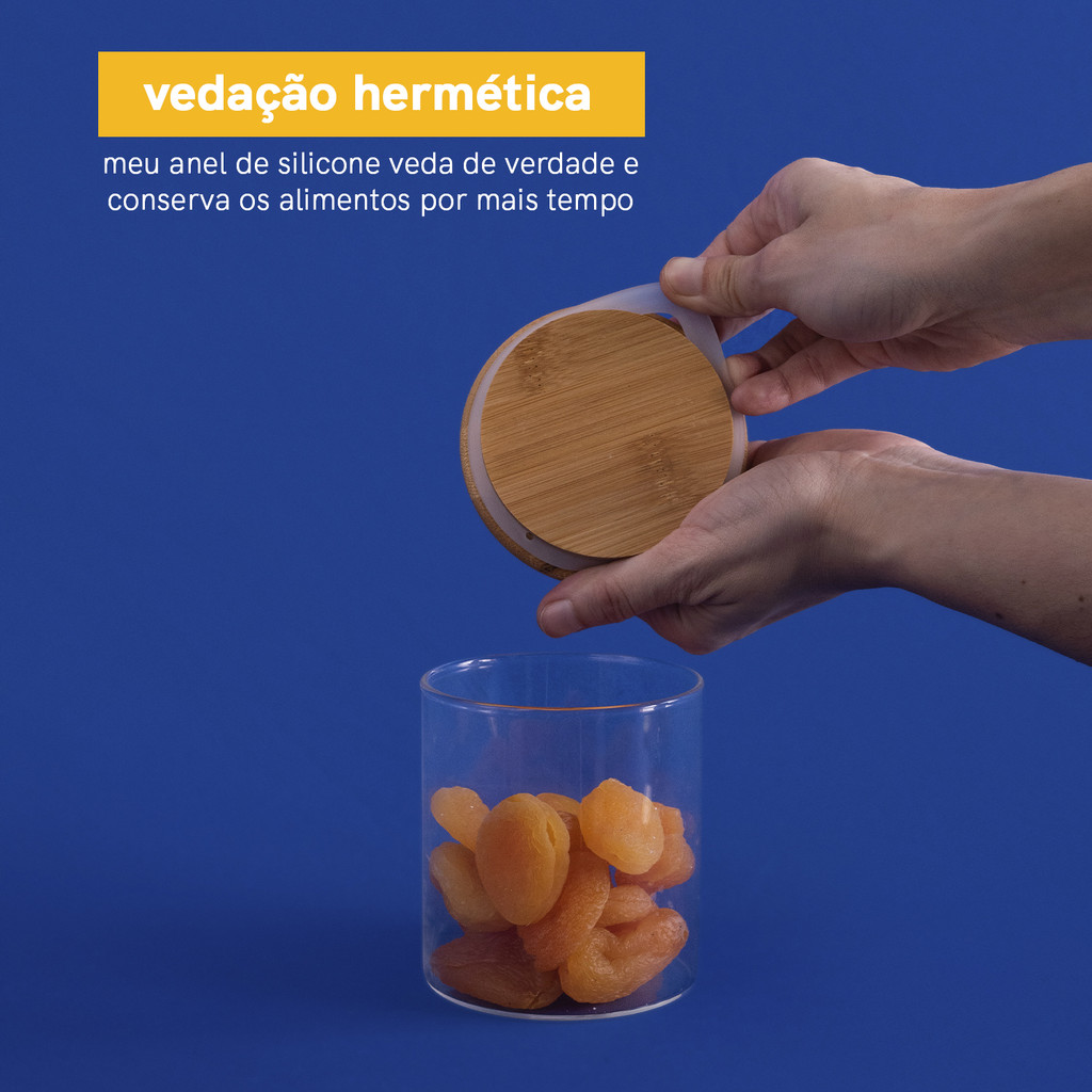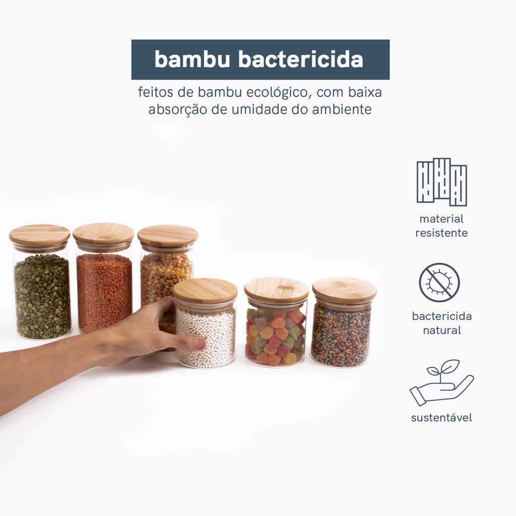 Kit Potes de Mantimento Red C/Tampa Bambu 400/600ml - 6 pçs Oikos