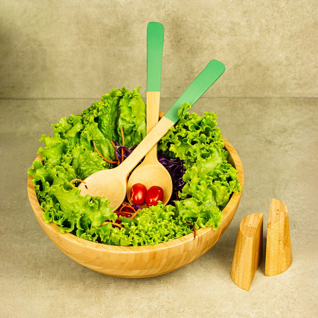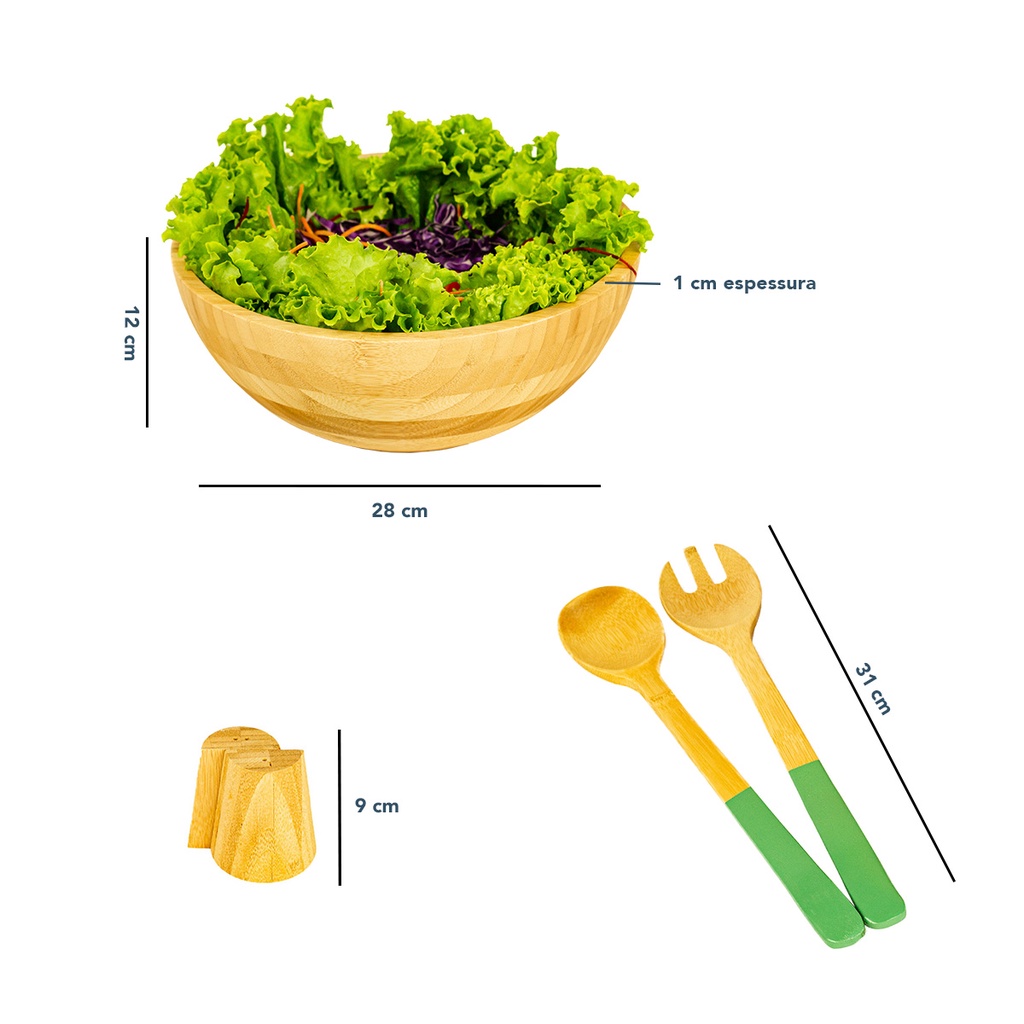 Kit Bowl Salada Com Saleiro Pimenteiro E Pegador De Bambu