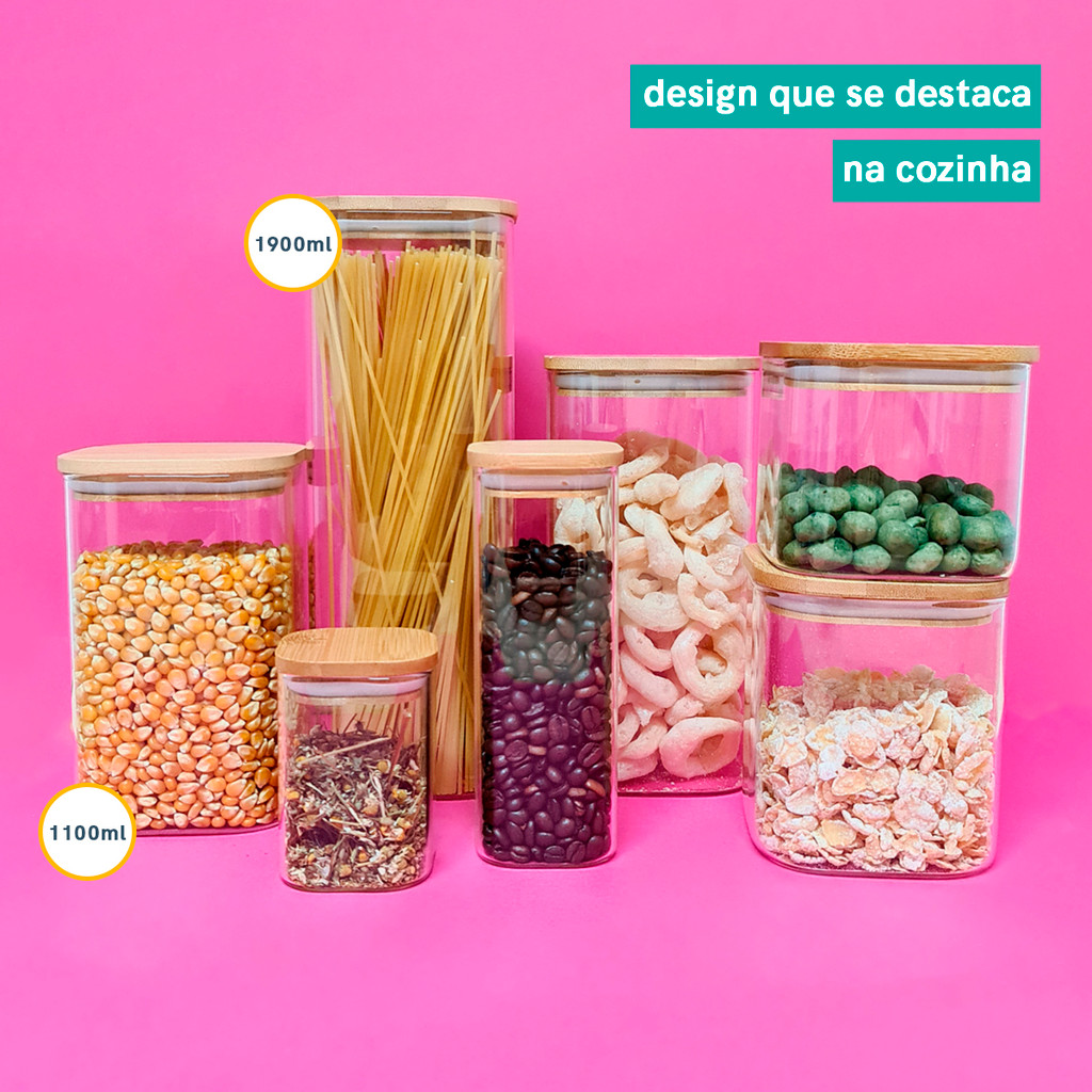 Potes de Mantimentos Quad 1900/1100ml C/Tampa Bambu - 2 Pçs Oikos