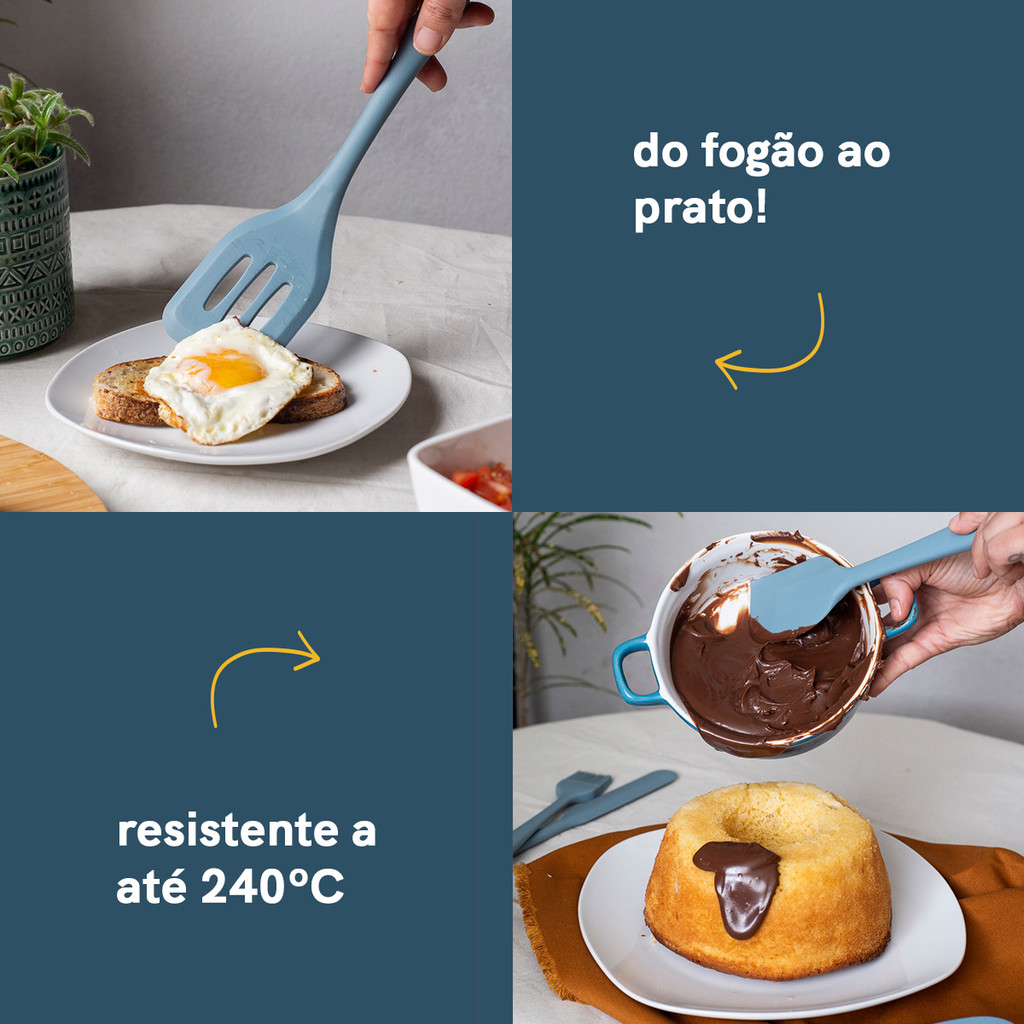 Kit de Utensílios de Silicone com 5 Peças Azul - Oikos