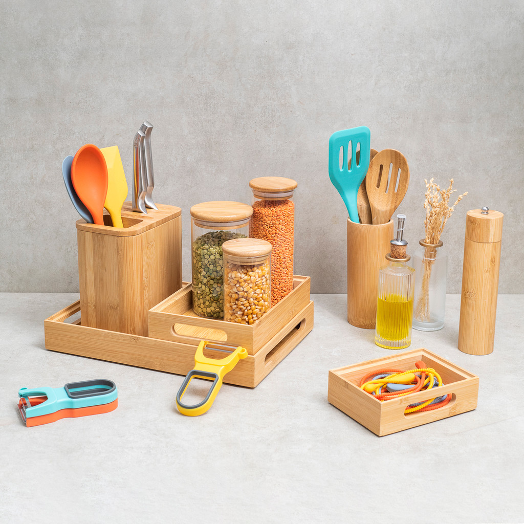 Caixa Vazada de Bambu Empilhável 31,8x23x4,5cm - Oikos