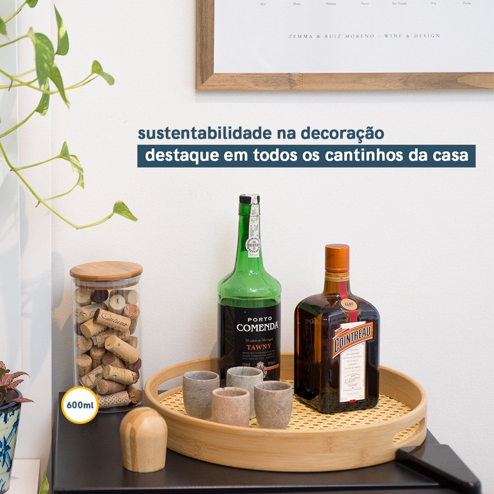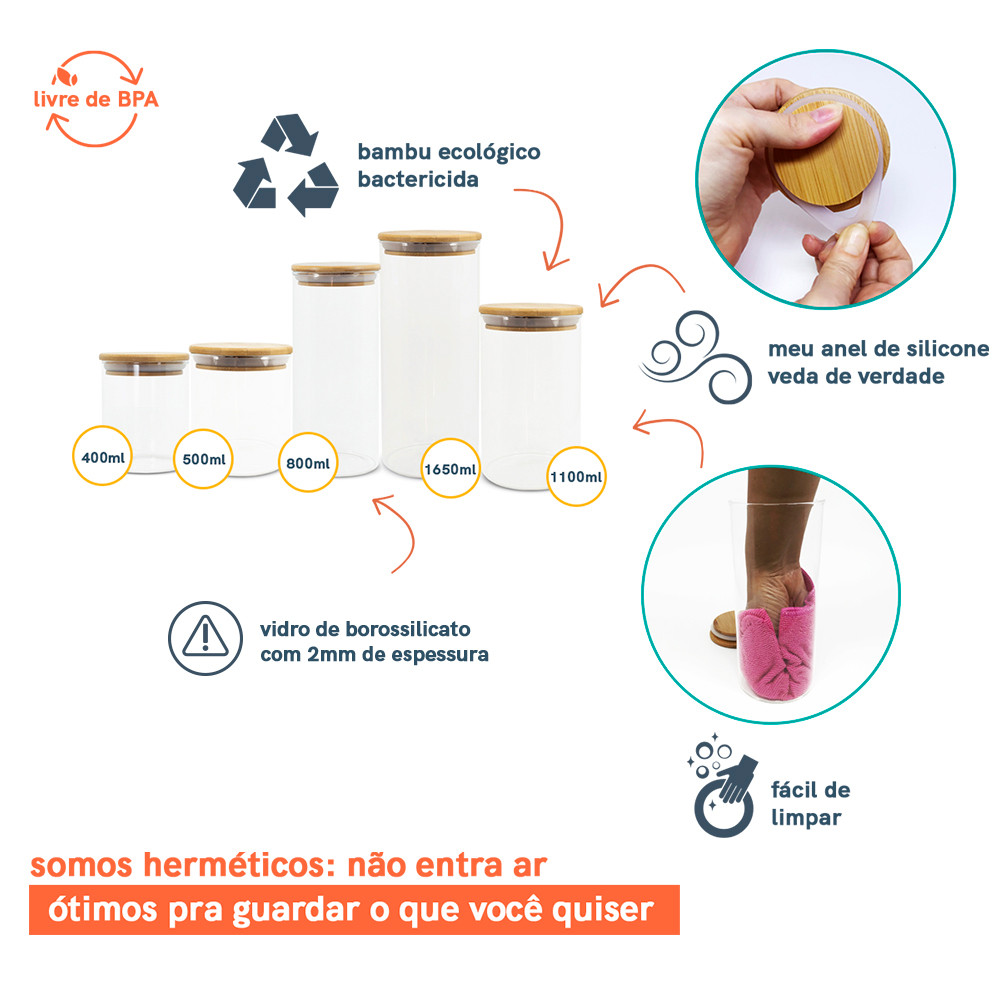 Kit de 6 Potes de Vidro Herméticos Tampa de Bambu - Oikos