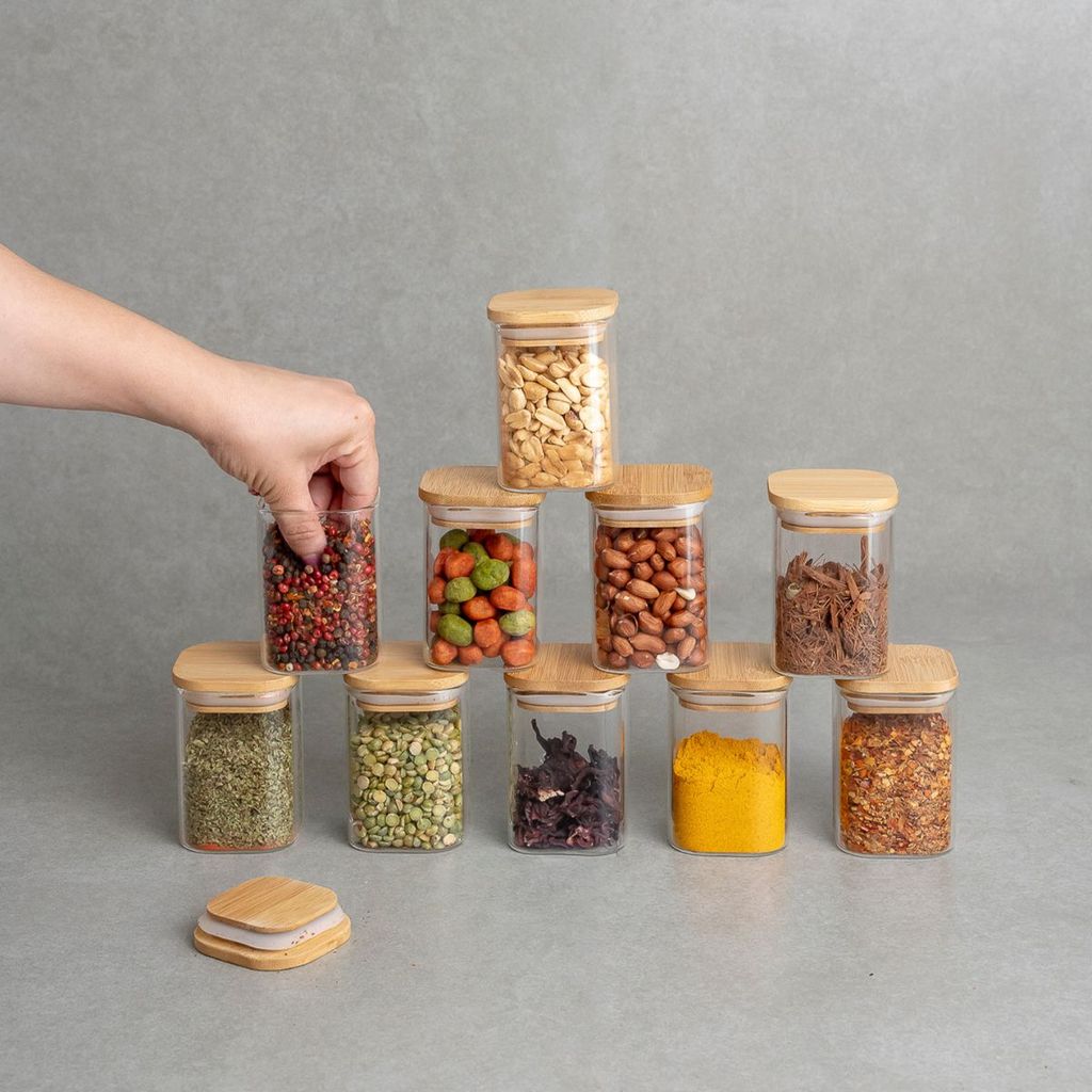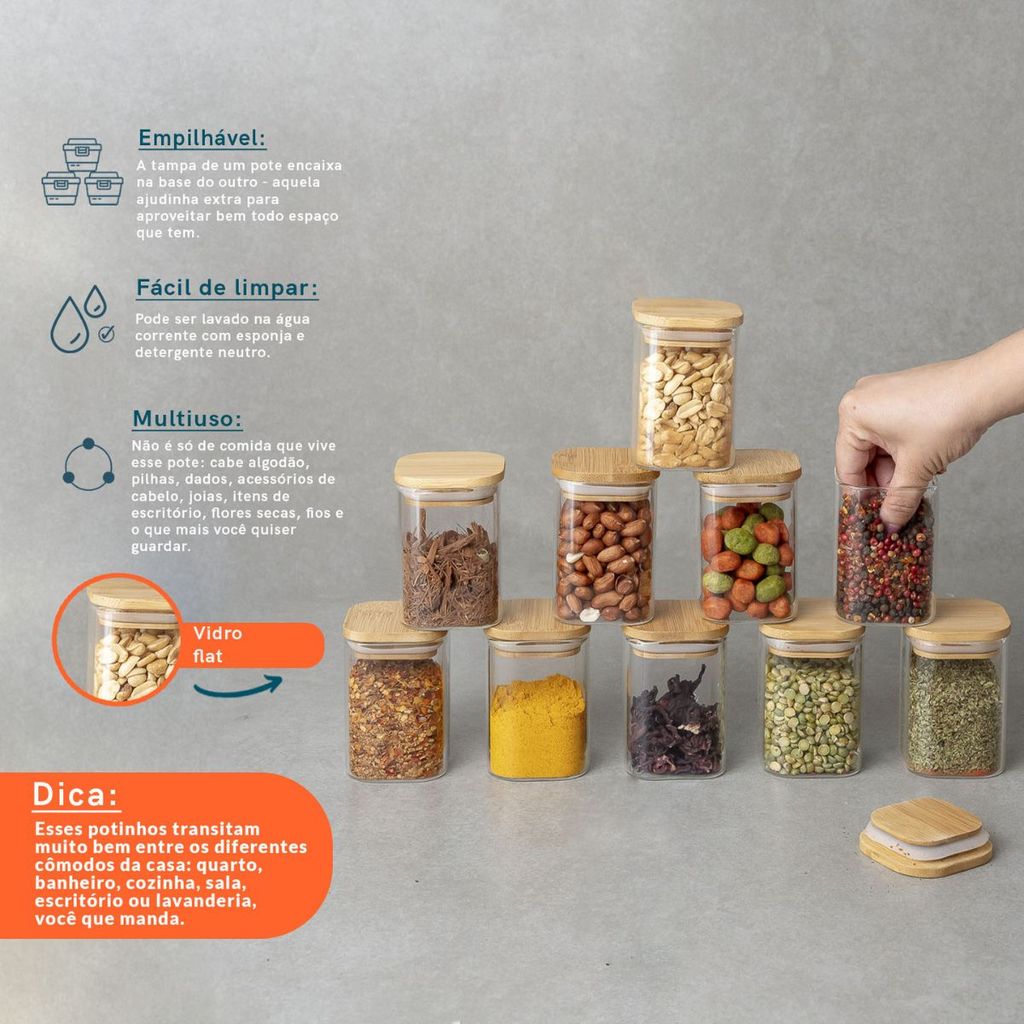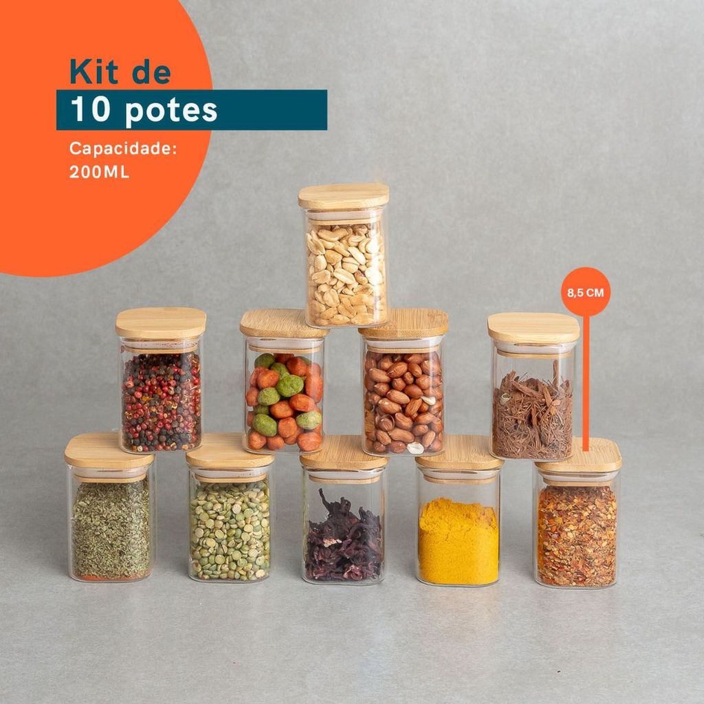 Potes de Mantimentos Quad 200ml C/Tampa Bambu - 10 Pçs Oikos